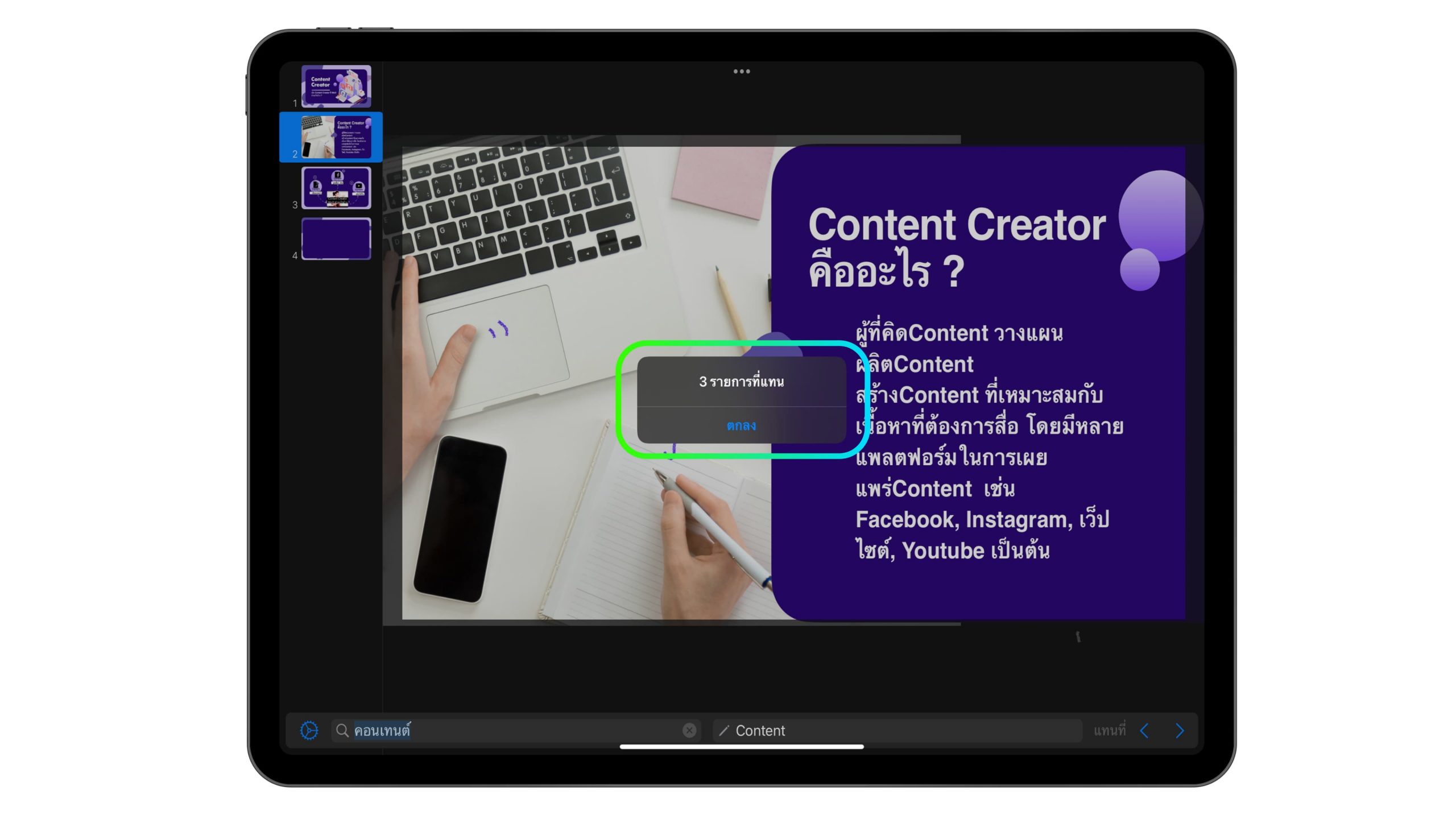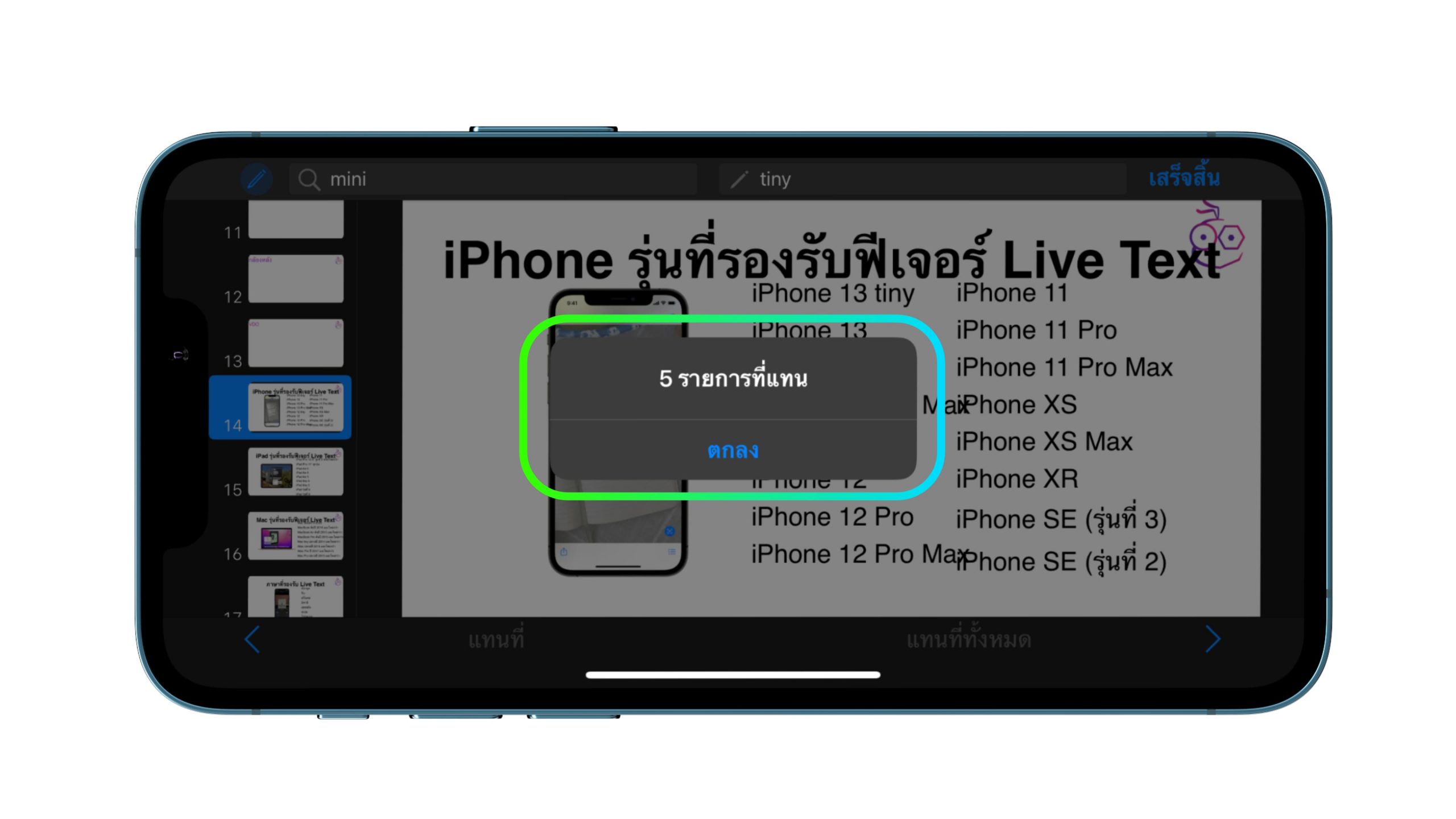 จะมีจำนวนรายการที่ต้องการจะแทนที่ปรากฏขึ้นมา ให้แตะ “ตกลง”