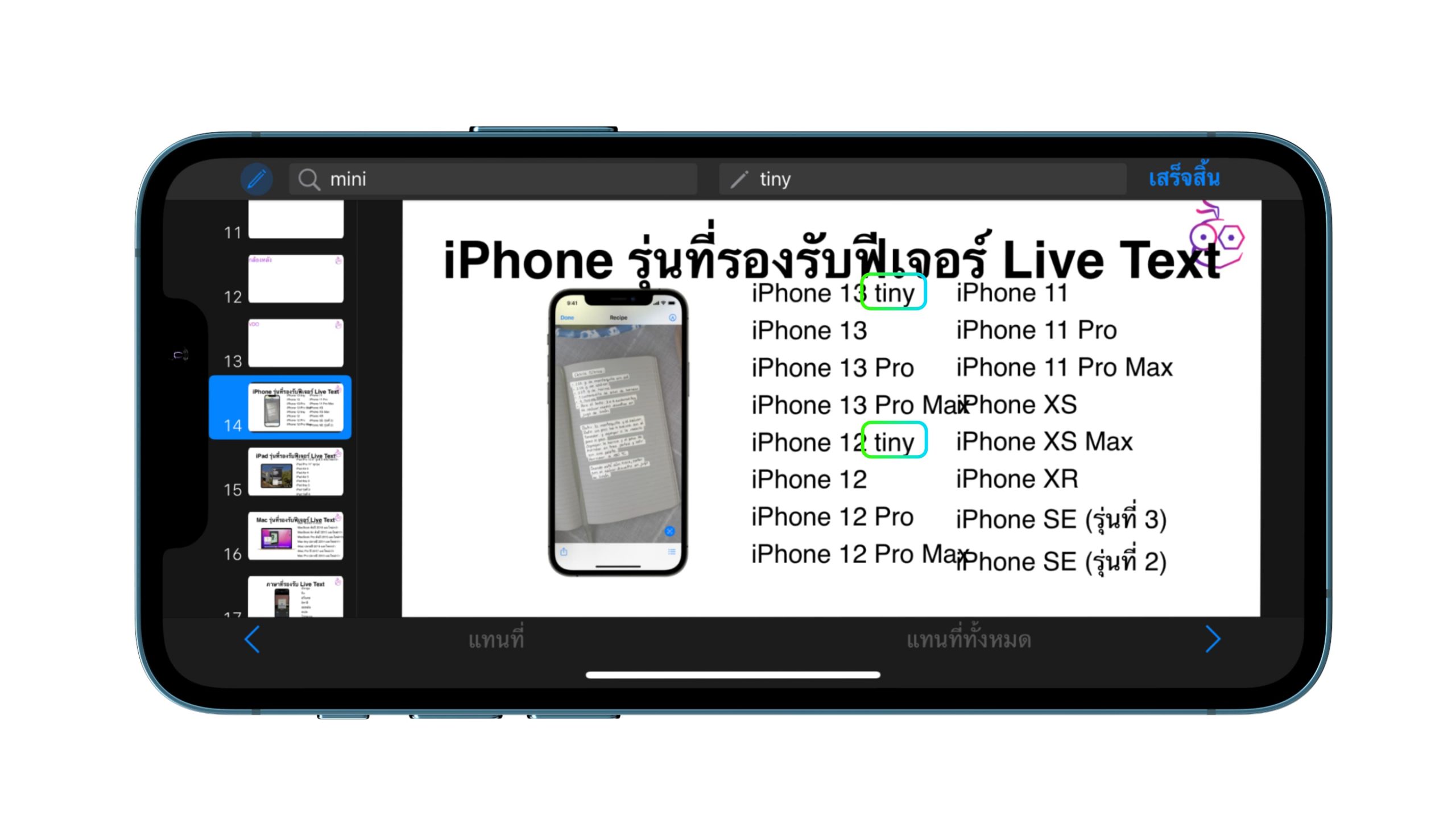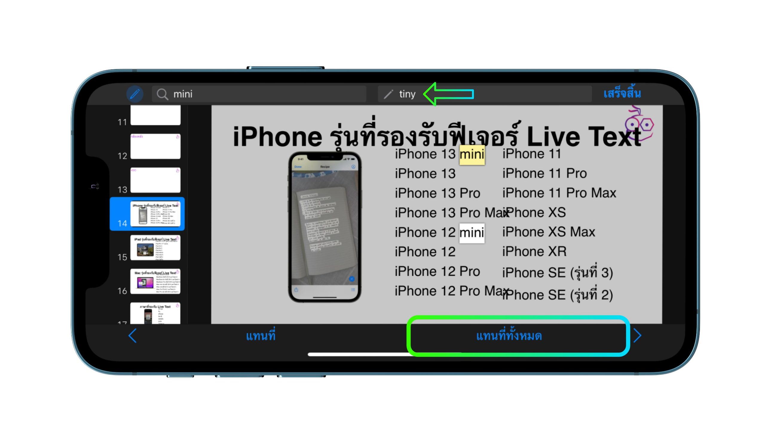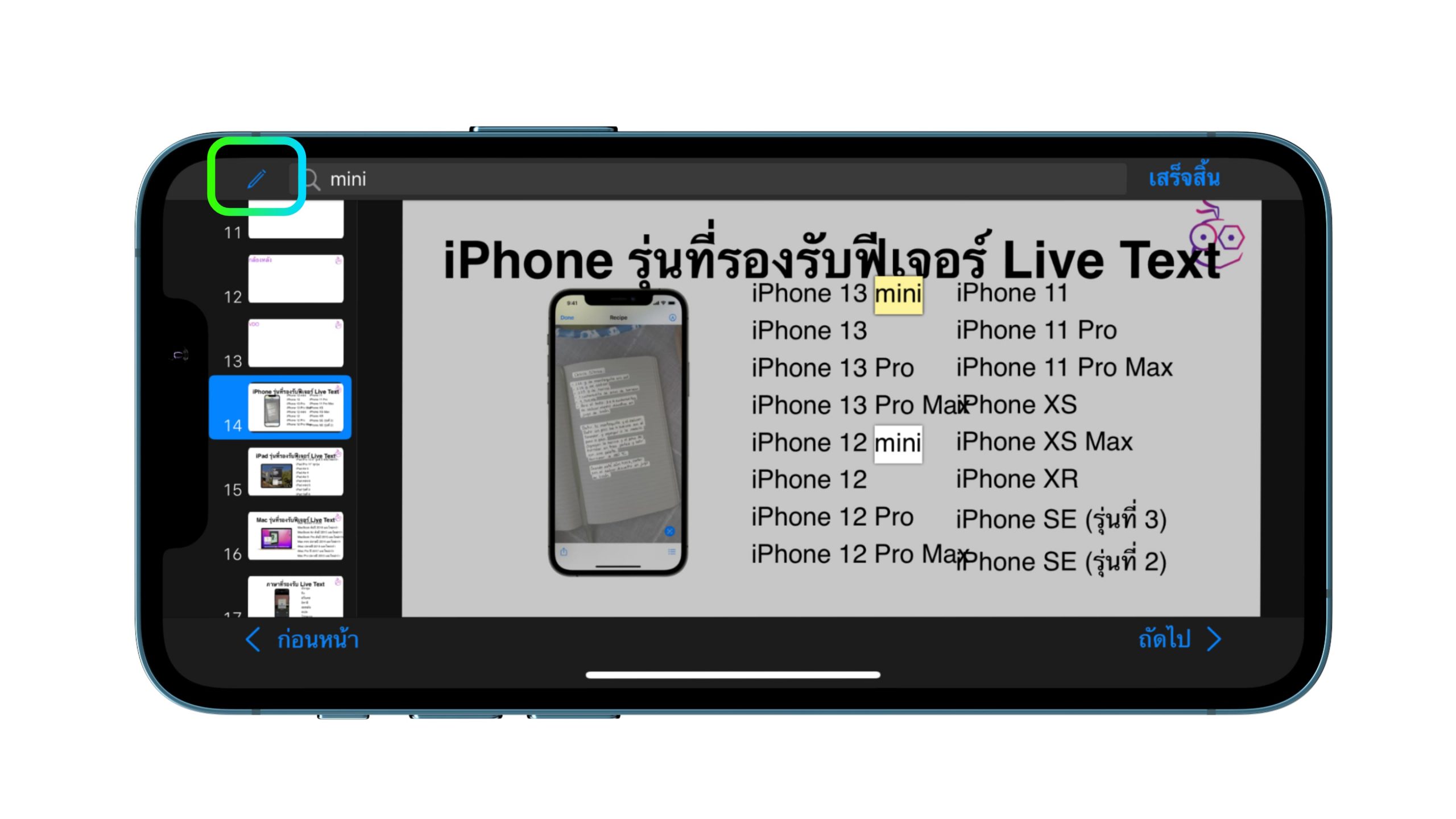 หากต้องการจะแทนที่ให้แตะที่เครื่องมือรูปดินสอ