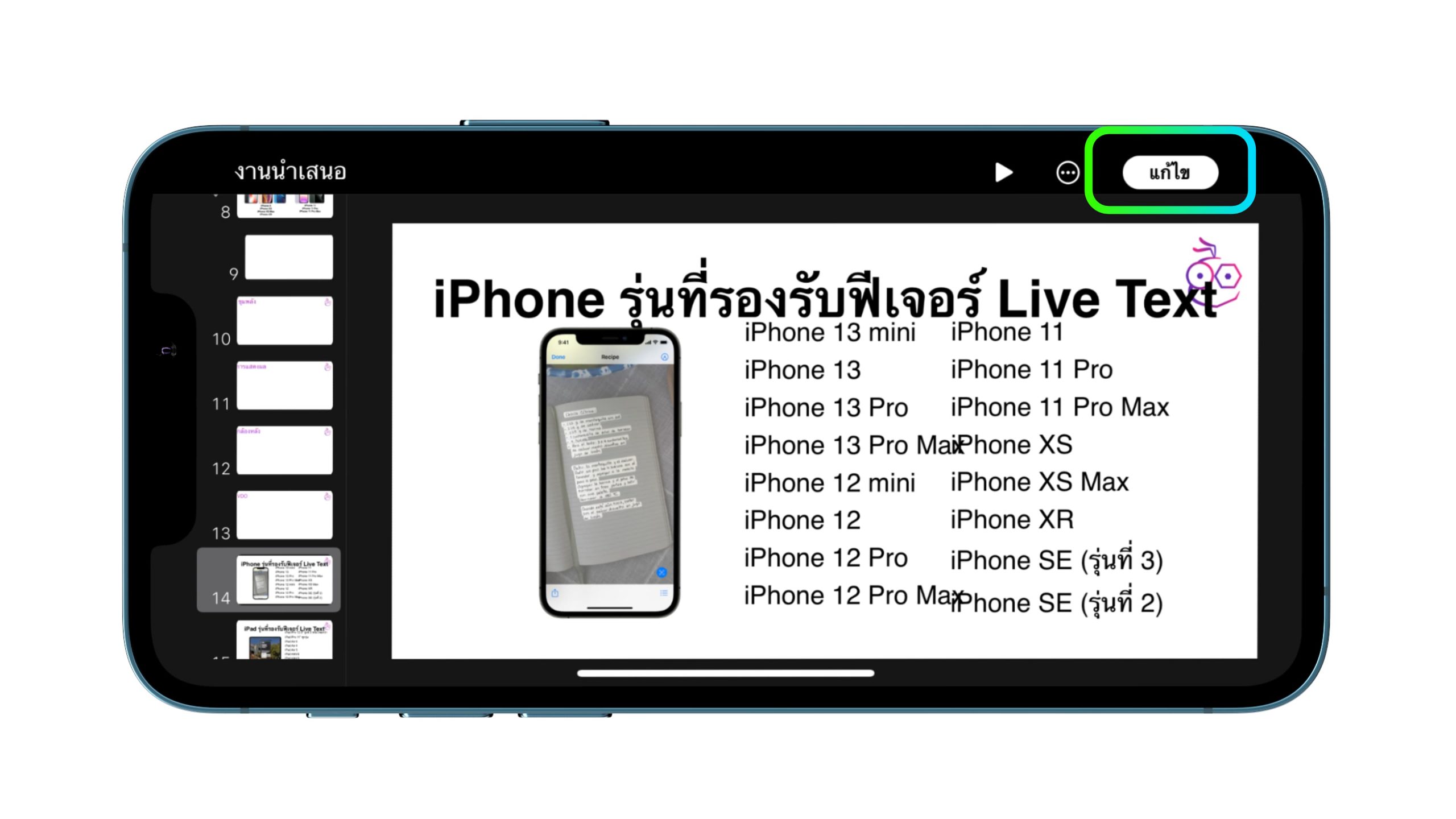 เปิดงานนำเสนอขึ้นมา จากนั้นแตะ “แก้ไข”