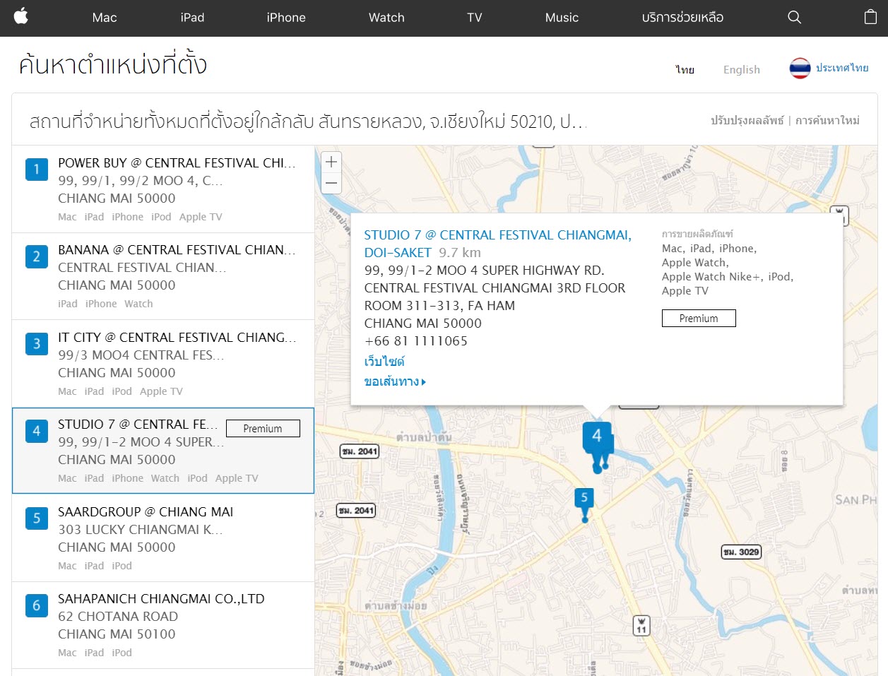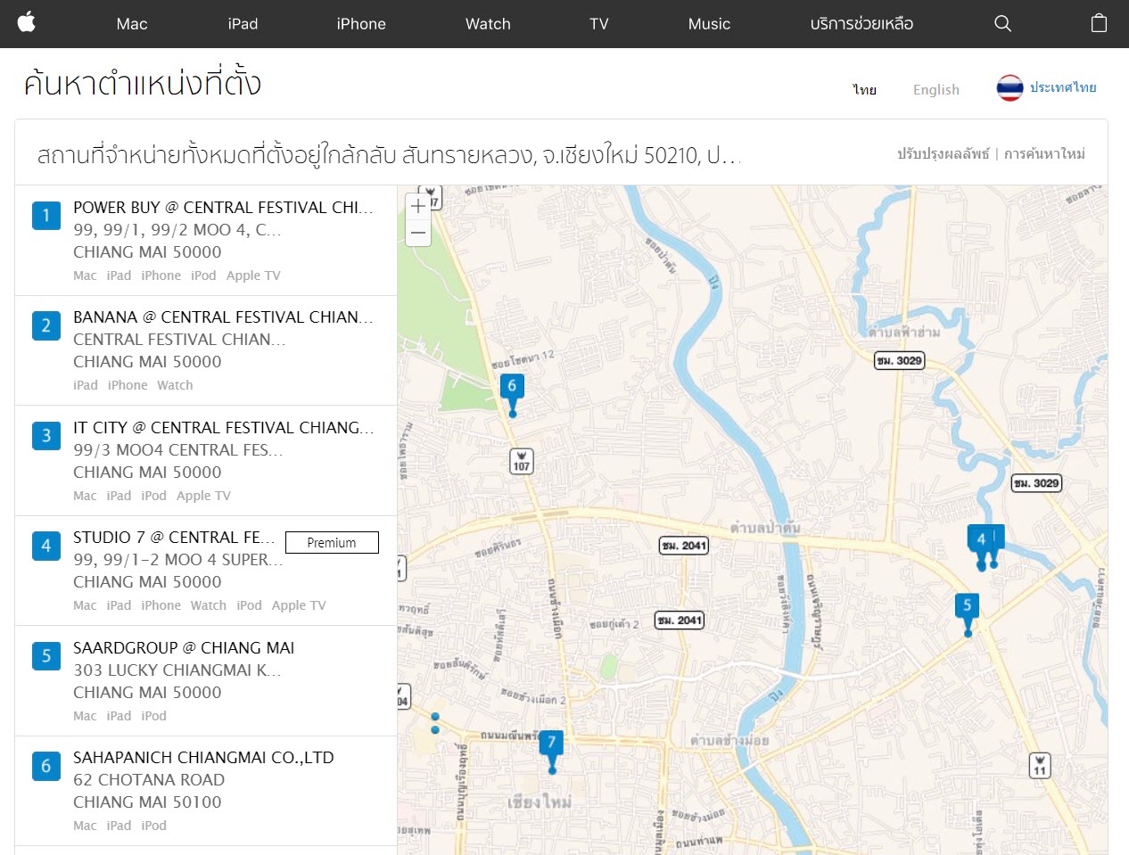การค้นหาผู้แทนจำหน่ายที่ได้รับอนุญาตจาก Apple ตามตำแหน่งที่ใกล้เคียง