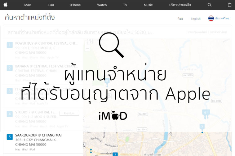 หากใครที่ต้องการซื้อสินค้าหรือเข้ารับบริการเกี่ยวกับสินค้าของ Apple จาก ผู้แทนจำหน่ายที่ได้รับอนุญาตจาก Apple เรามีวิธีค้นหาข้อมูลผู้ให้บริการดังกล่าวมาแนะนำกัน