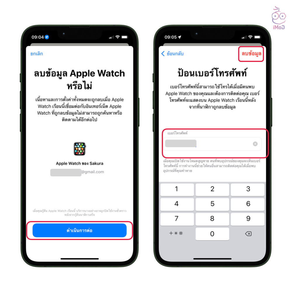 เมื่อลบแล้ว Apple Watch จะถูกล้างข้อมูลอย่างสมบูรณ์ เพื่อปกป้องข้อมูลในเครื่อง ป้องกันการนำไปใช้ในทางที่ผิด ซึ่งบนหน้าจอ Apple Watch จะแสดงหมายเลขโทรศัพท์ที่เราป้อนไว้บนหน้าจอ เพื่อให้คนที่เก็บได้สามารถติดต่อเราได้