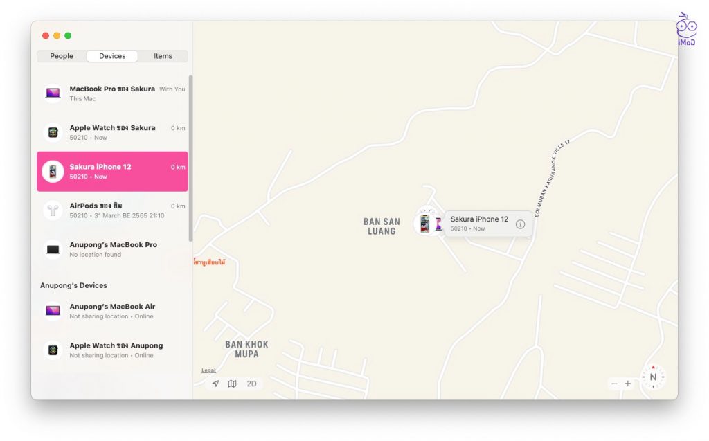 หากเรามีเครื่อง Mac ก็สามารถล็อกอิน Apple ID ที่แอป Find My แล้วค้นหาได้เช่นกัน แต่อุปกรณ์ที่ค้นหาได้นั้นจะต้องใช้ Apple ID เดียวกันหรือเป็นอุปกรณ์ของคนที่ในครอบครัว (Family Sharing)