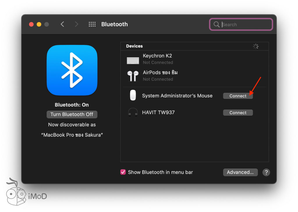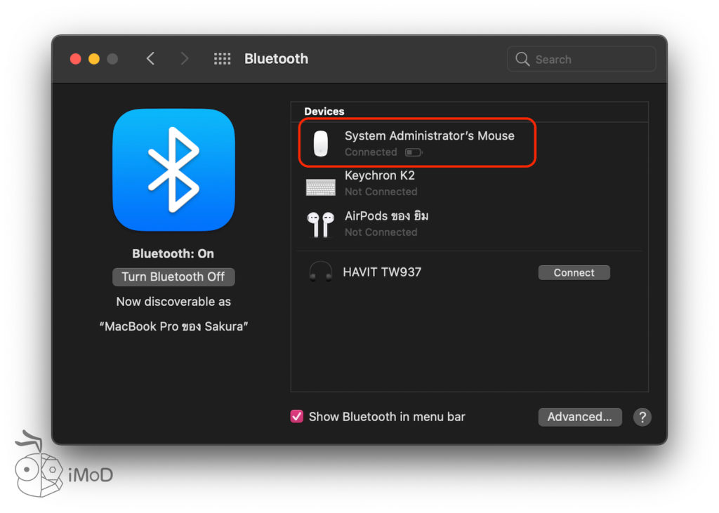 - อุปกรณ์ที่จะนำมาเชื่อมต่อบลูทูธกับ Mac จะต้องมีแบตเตอรี่เหลืออยู่