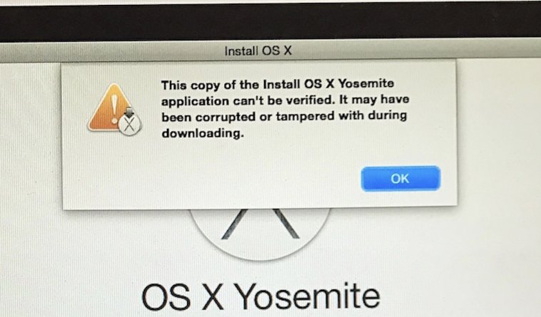 เป็นปัญหาที่ปวดหัวระดับชาติเลยก็ว่าได้เมื่อต้องการที่จะติดตั้ง macOS ลงที่เครื่อง MacBook หรือ MacBook Pro หรือเครื่องตระกูล Mac พบปัญหาว่าหลังจากสร้าง Mac Bootable Disk ได้แล้วนั้นนำมาติดตั้งลงเครื่องแล้วเจอปัญหาลงไม่ได้ขึ้นข้อผิดพลาด “This copy of the Install OS X application can’t be verified. It may have been corrupted or tampered with during downloading.”