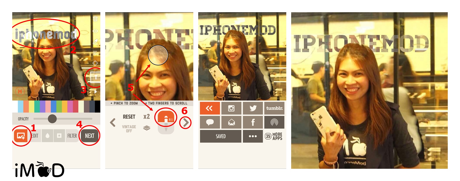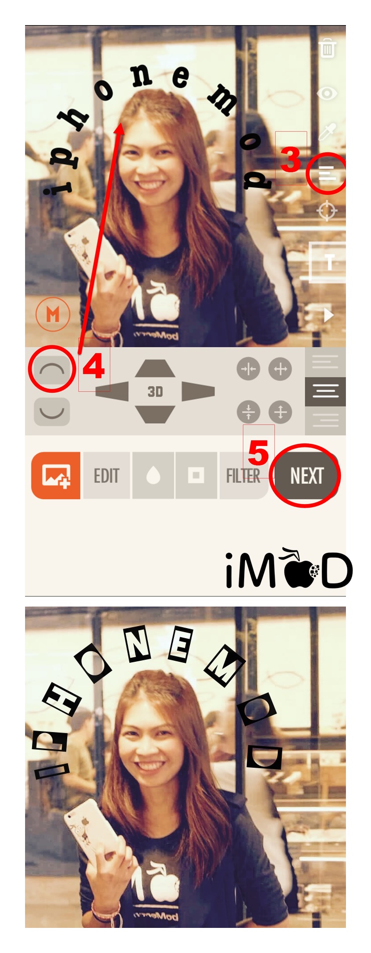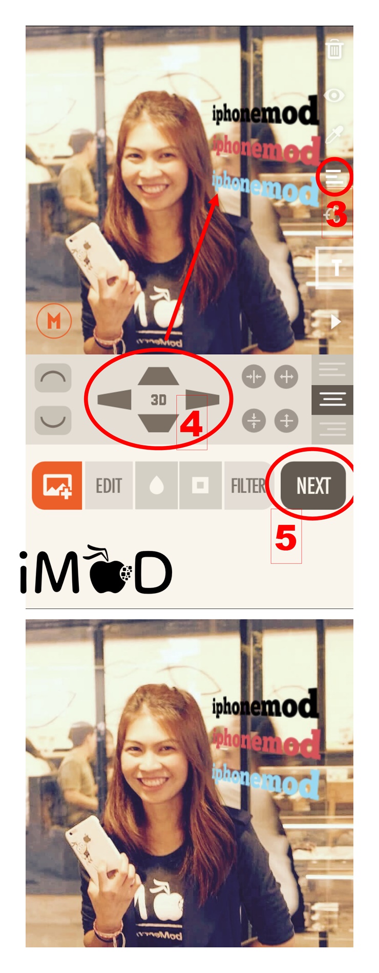 ขั้นตอนที่ 1 และ 2 ทำเหมือนตัวอย่างแรกคือ เลือกรูปภาพและใส่ข้อความ