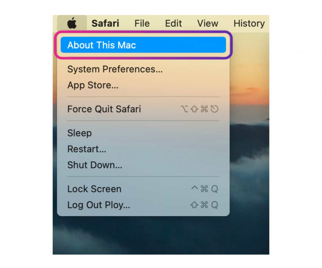 ให้ไปที่ปุ่มโลโก้  มุมบนซ้าย > เลือก About This Mac