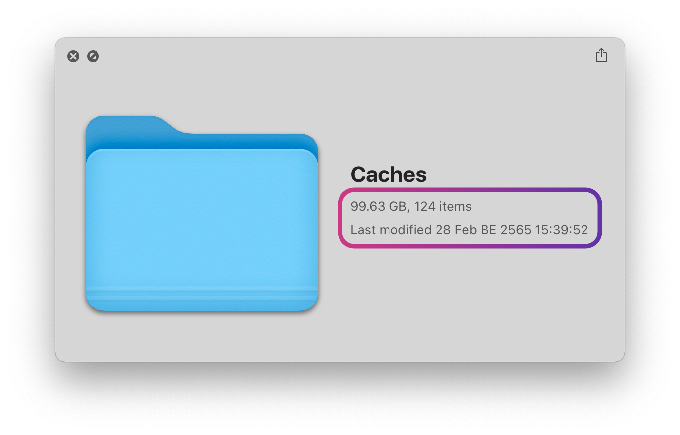 2. เลือกโฟลเดอร์แคชแล้วกด Space Bar เพื่อดูขนาดความจุของตัวแคชบนเครื่อง