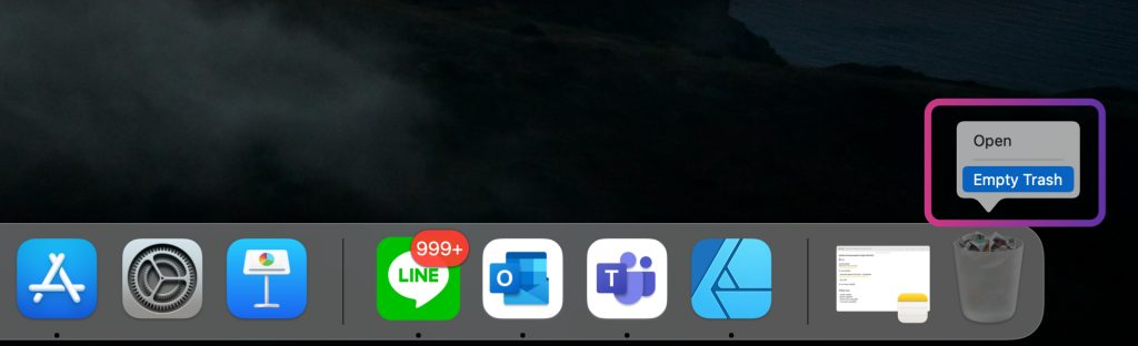 เมื่อเราคลิกขวาที่ไฟล์แล้วเลือก “ย้ายไปที่ถังขยะ” ไฟล์เหล่านั้นจะถูกลบออก และจะไปอยู่ใน Trash แทนถ้าหากต้องการล้างข้อมูลนี้ ให้คลิกขวาที่ไอคอนถังขยะในแถบ Dock > เลือก “Empty Trash”