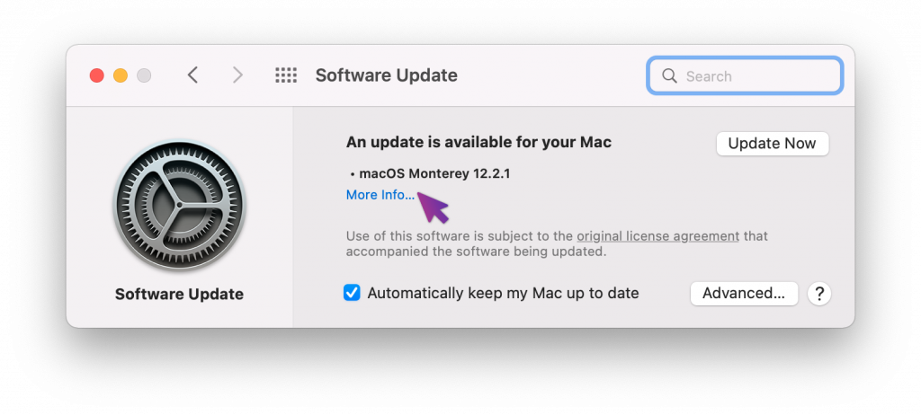 ให้ไปคลิกที่โลโก้  > System Preferences > Software Update > More info ถ้าเห็นไฟล์อัพเดต macOS ที่ดาวน์โหลดเราสามารถคลิกติดตั้งได้ทันที แต่ถ้าหากไม่ต้องการติดตั้งรายการอัพเดต สามารถเลือกไฟล์แล้วกดปุ่มลบบนเครื่อง Mac ได้เลย