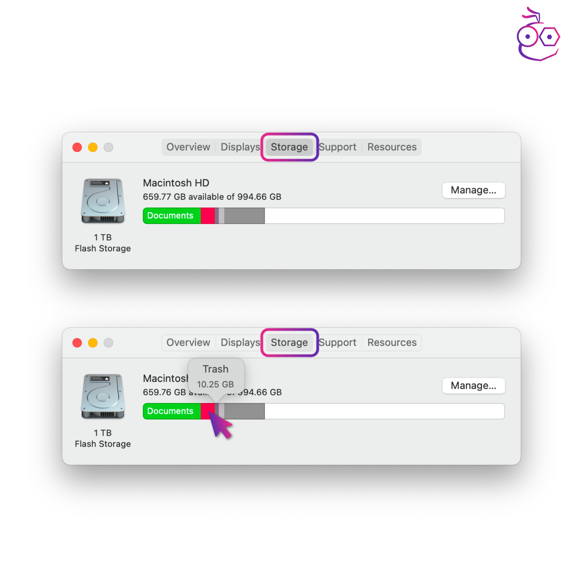 เราควรที่จะตรวจเช็คพื้นที่จัดเก็บข้อมูลบนเครื่อง Mac ของเรา เพื่อเพิ่มประสิทธิภาพของการจัดเก็บโดยทำตามวิธีที่ 1 ทุก ๆ เดือนเพื่อลบไฟล์ขนาดใหญ่ที่ไม่ได้ใช้ออก โดยแนวทางนี้จะช่วยให้พื้นที่ในเครื่อง Mac ของเราว่าง และทำงานได้รวดเร็วขึ้น