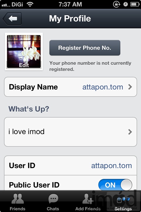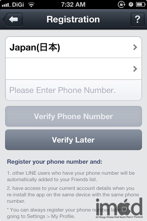 ขั้นที่ 7: จากนั้นพอได้ครบสมอารมณ์หมายเเล้ว ก็กลับมาประเทศที่เราอยู่ปัจจุบันด้วยการไปที่ Profile ของเราบน LINE ครับ ข้างๆ Display จะมีช่องให้กรอกเบอร์ (กดที่ Register Phone No.) เราก็ดำเนินการได้เลย ใส่เบอร์คุณไปซะ ระบบจะเลือกแสดงประเทศที่เราอยู่ปัจจุบันให้อยู่เเล้ว เราก็ใส่แค่เบอร์ แค่นี้เอง ก็กลับมาเป็น Line เป็นประเทศที่เราอยู่แล้ว