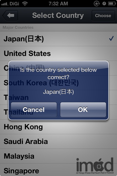 ขั้นที่ 5: Line จะถามย้ำเรื่องประเทศอีกครั้ง ให้เลือก ประเทศ Japan เช่นเดิม