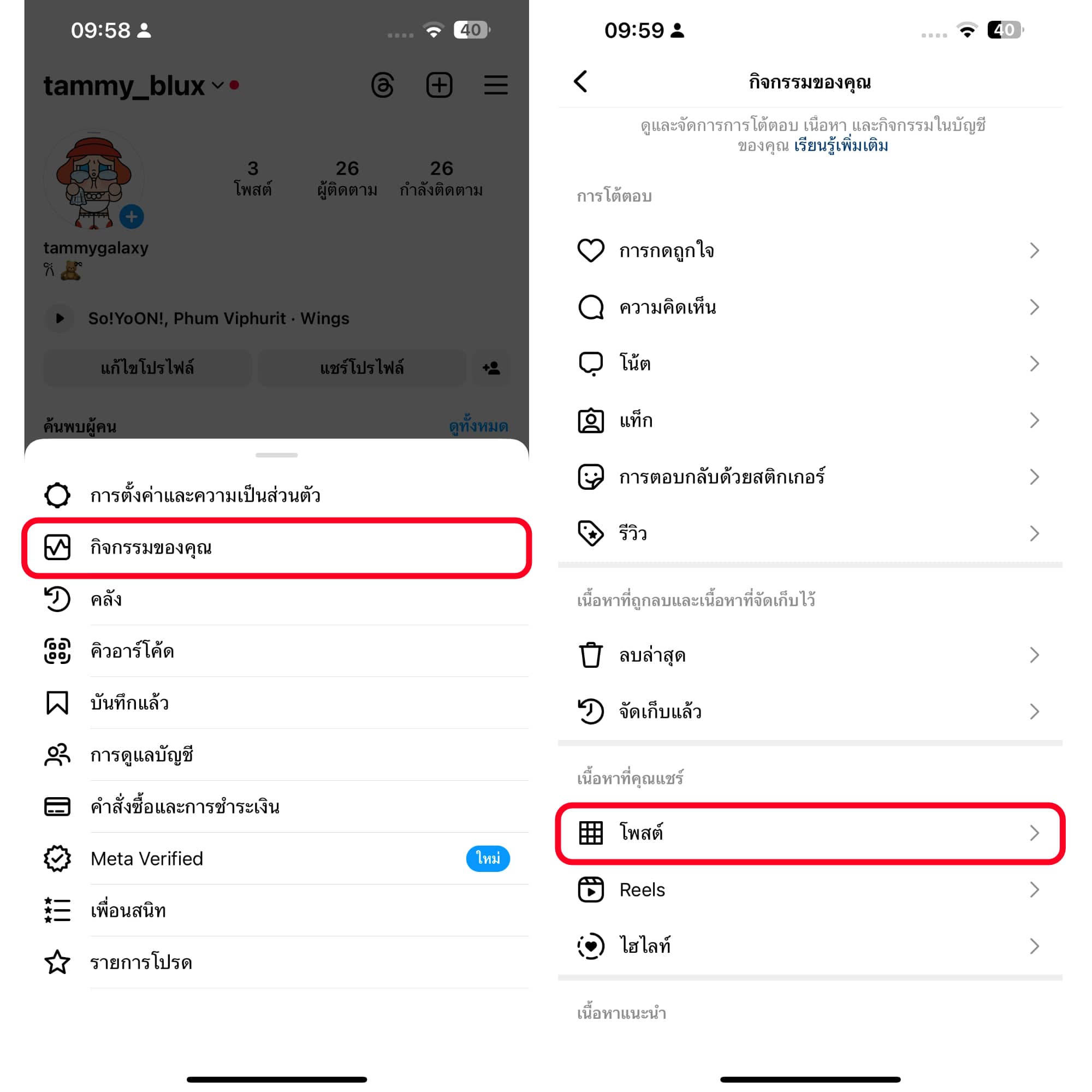 กิจกรรมของคุณ > โพสต์