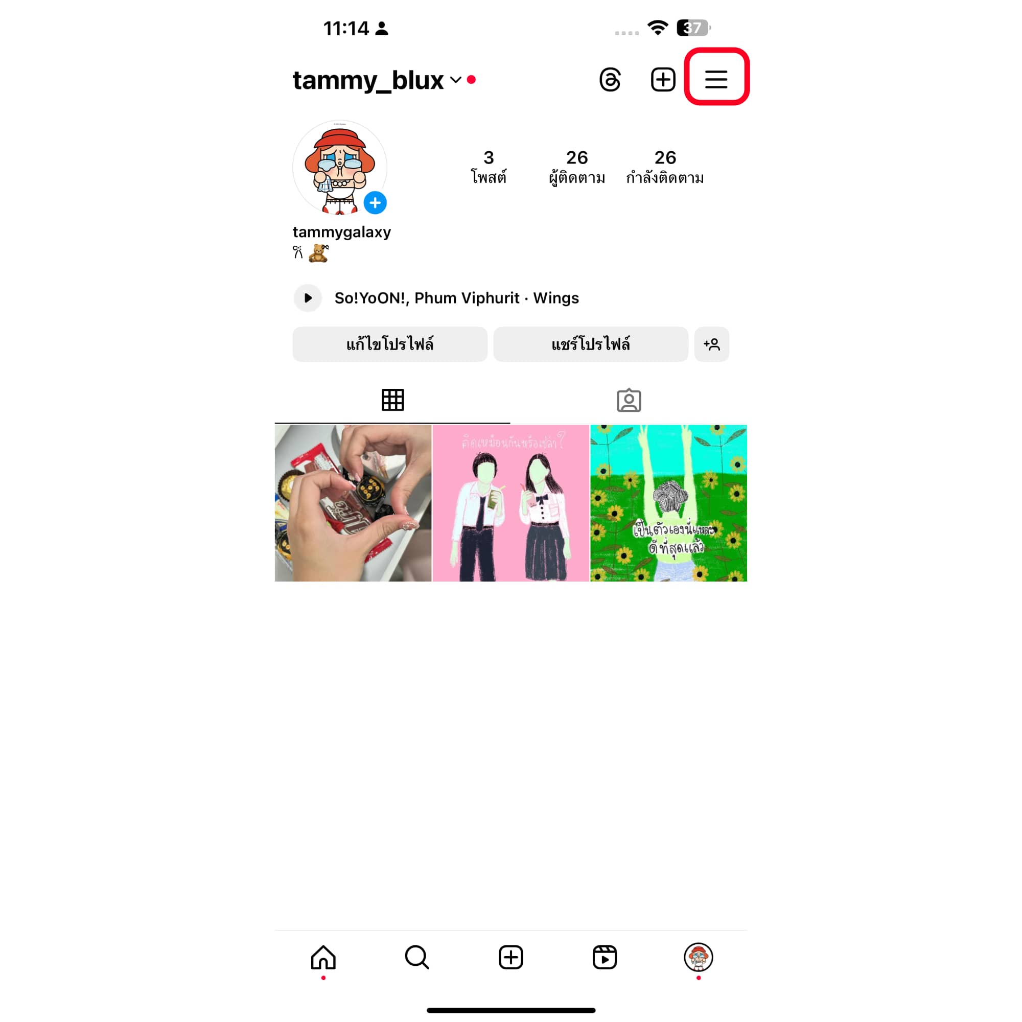 เข้ามาที่หน้าโปรไฟล์ไอจีของเรา กด “จุดสามสุด” มุมบนขวา