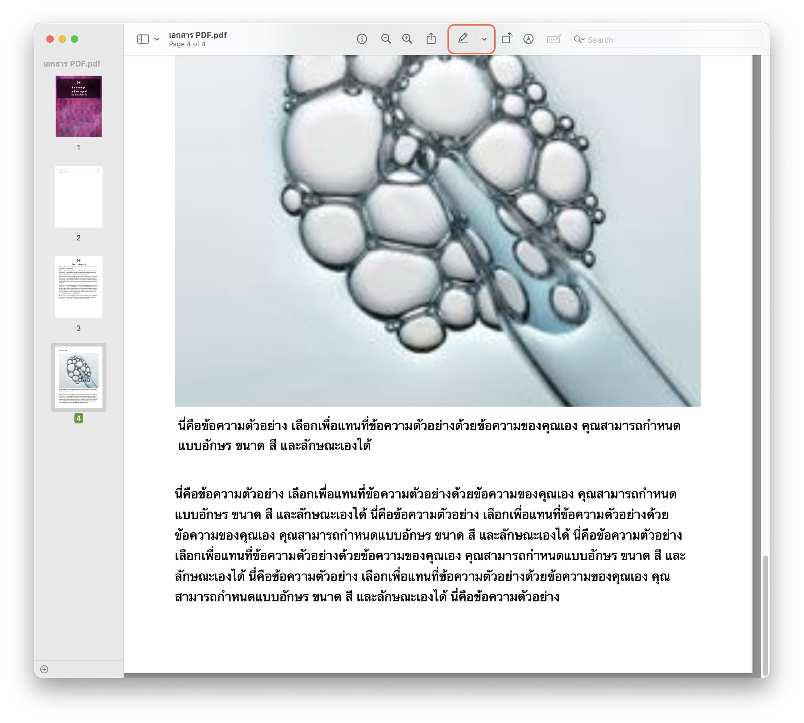 สำหรับใครที่ไม่อยากโหลดแอปเพิ่มบน Mac ก็สามารถใช้งานเครื่องมือ Mark Up ได้เช่นกัน เริ่มต้นด้วยการเปิดเอกสาร PDF ขึ้นมาก่อนให้แอป Preview จากนั้นก็เลือกไอคอนดินสอด้านบน คลิกให้พื้นหลังไอคอนเป็นสีเทา