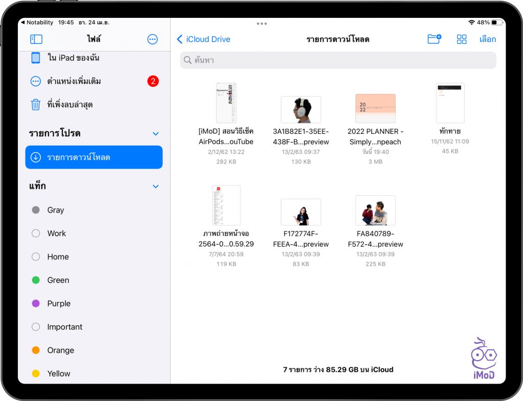 ก่อนอื่นเราต้องดาวน์โหลด Digital Planner (ไฟล์ PDF) ที่แจกฟรีหรือซื้อมาตามร้านค้าออนไลน์มาเก็บไว้ในแอปไฟล์ (Files) บน iPad หรือเก็บไว้ในไดรฟ์ iCloud อื่น ๆ ดังตัวอย่าง เก็บไว้ในแอปไฟล์ โฟลเดอร์ รายการดาวน์โหลด