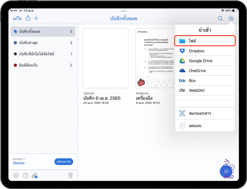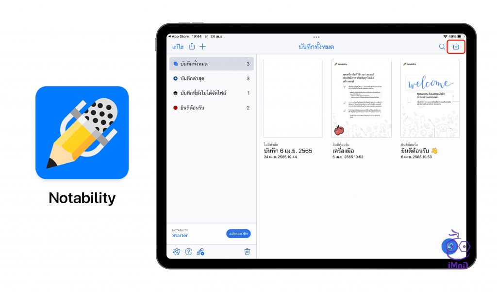 ไปที่แอป Notability > แตะไอคอน นำเข้า (Import)