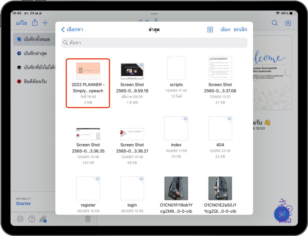 เลือกไฟล์ Digital Planner ที่เราดาวน์โหลดมา