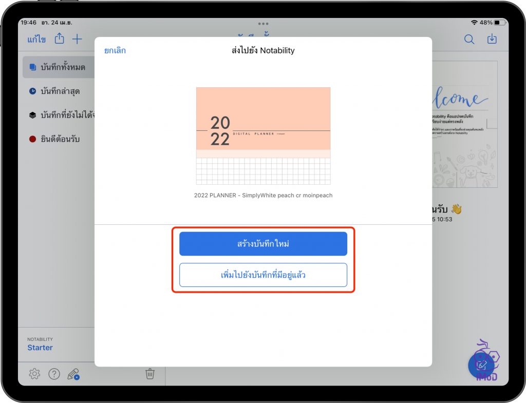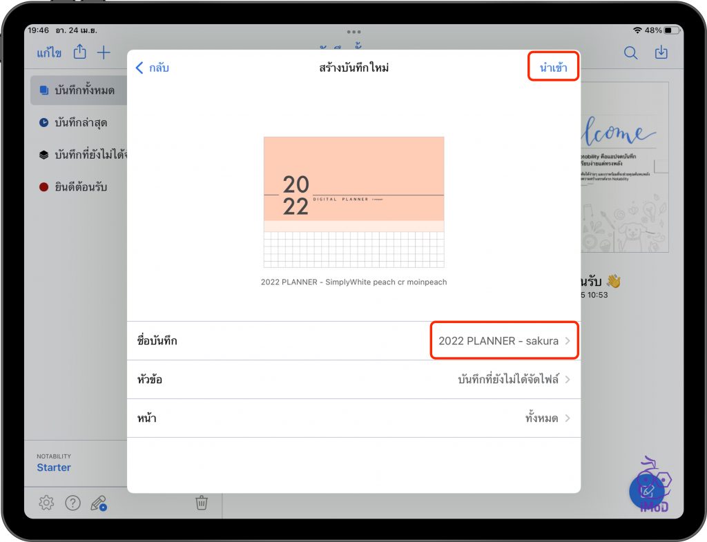 วิธีนำเข้า Digital Planner ในแอป Notability บน iPad