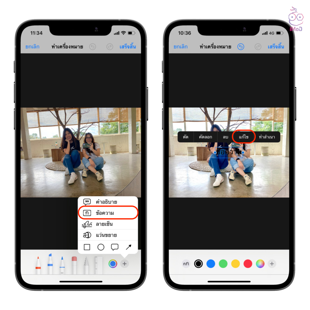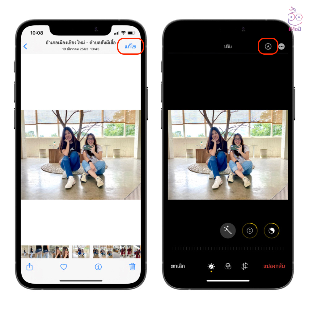 ไปที่แอปรูปภาพ (Photos) แล้วเลือกรูปภาพที่ต้องการ > แตะ แก้ไข (Edit) > แตะไอคอน Mark Up ด้านบนมุมซ้าย