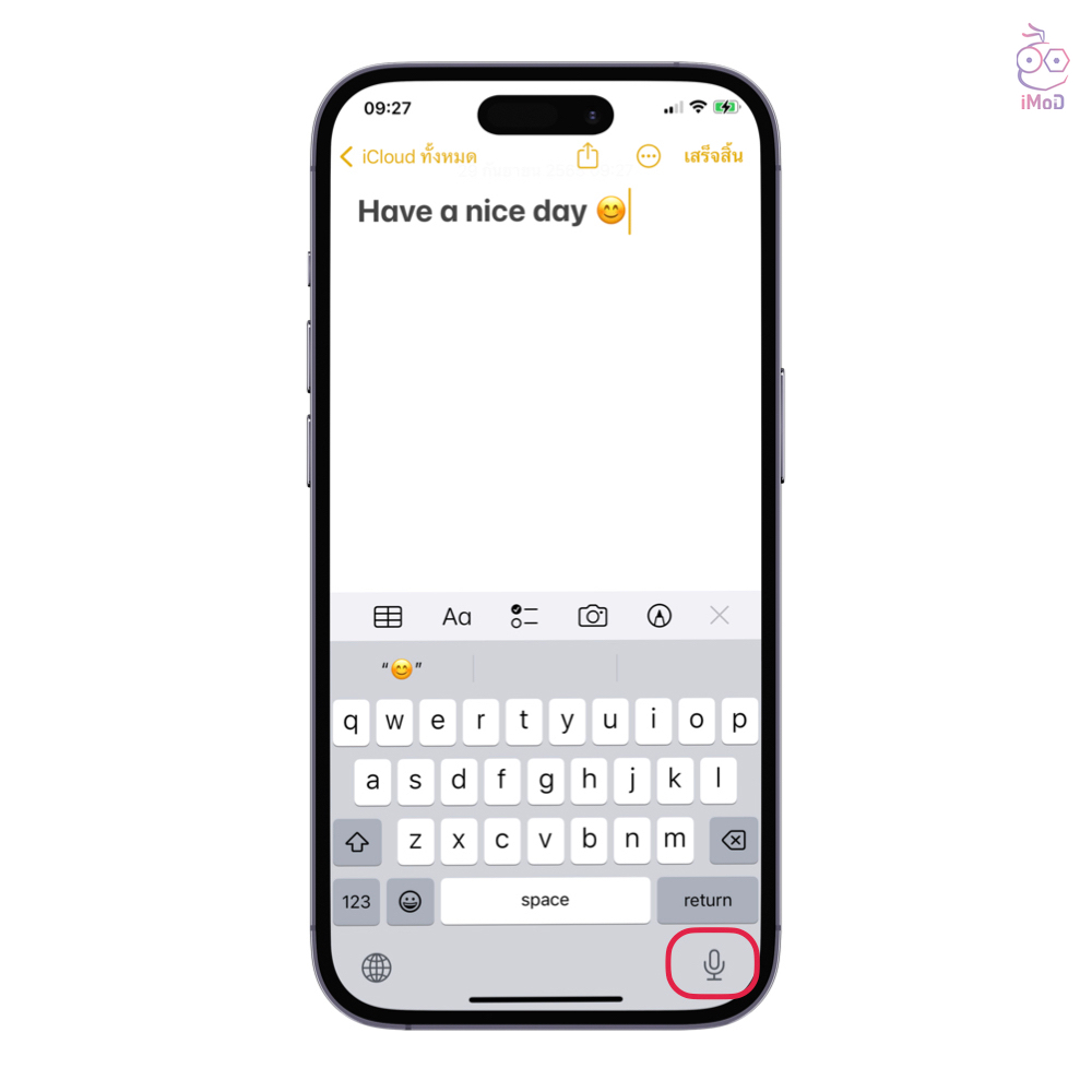 วิธีป้อนอิโมจิ (Emoji) ตามคำบอกบน iPhone ใน iOS 16