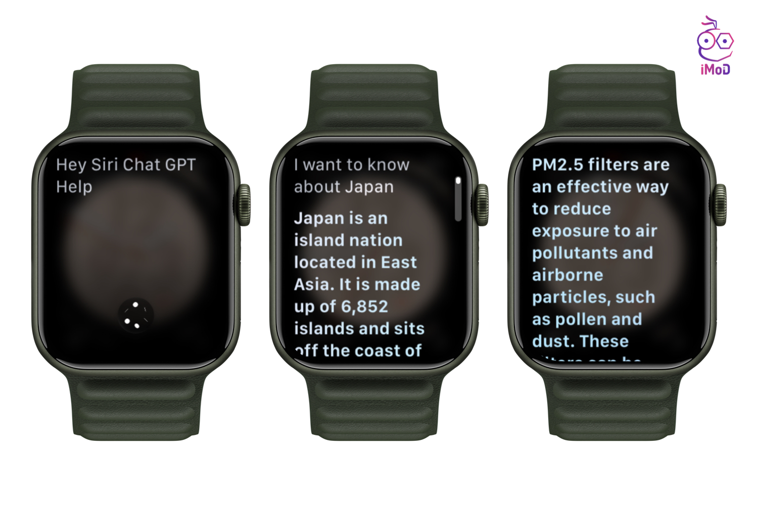 นอกจากนี้เรายังสามารถใช้งานบน Apple Watch ได้ด้วย โดยการใช้คำสั่งเดียวกัน พูดว่า Hey Siri, Chat GPT Help และถามสิ่งที่ต้องการได้เลย