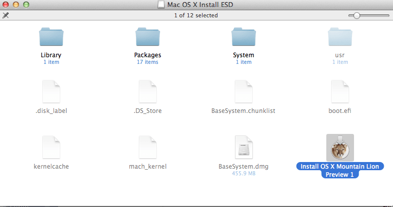 5. จะเจอหน้าตาแบบนี้ให้ Doble Click ที่ Install OS X Mountain Lion Preview 1