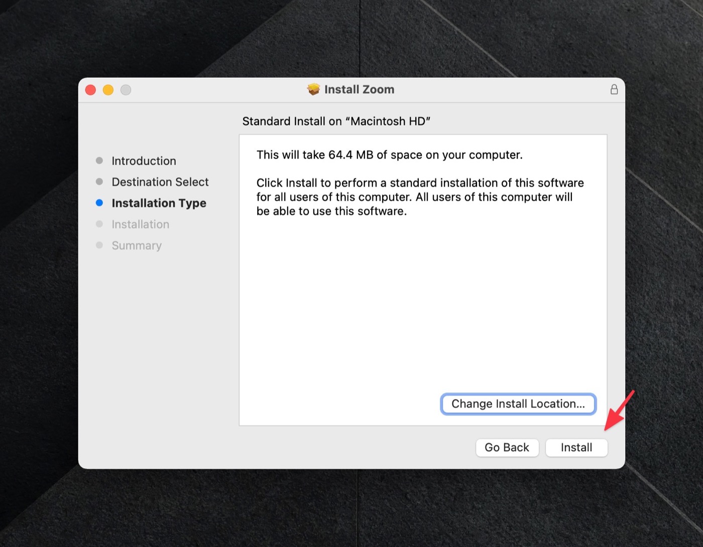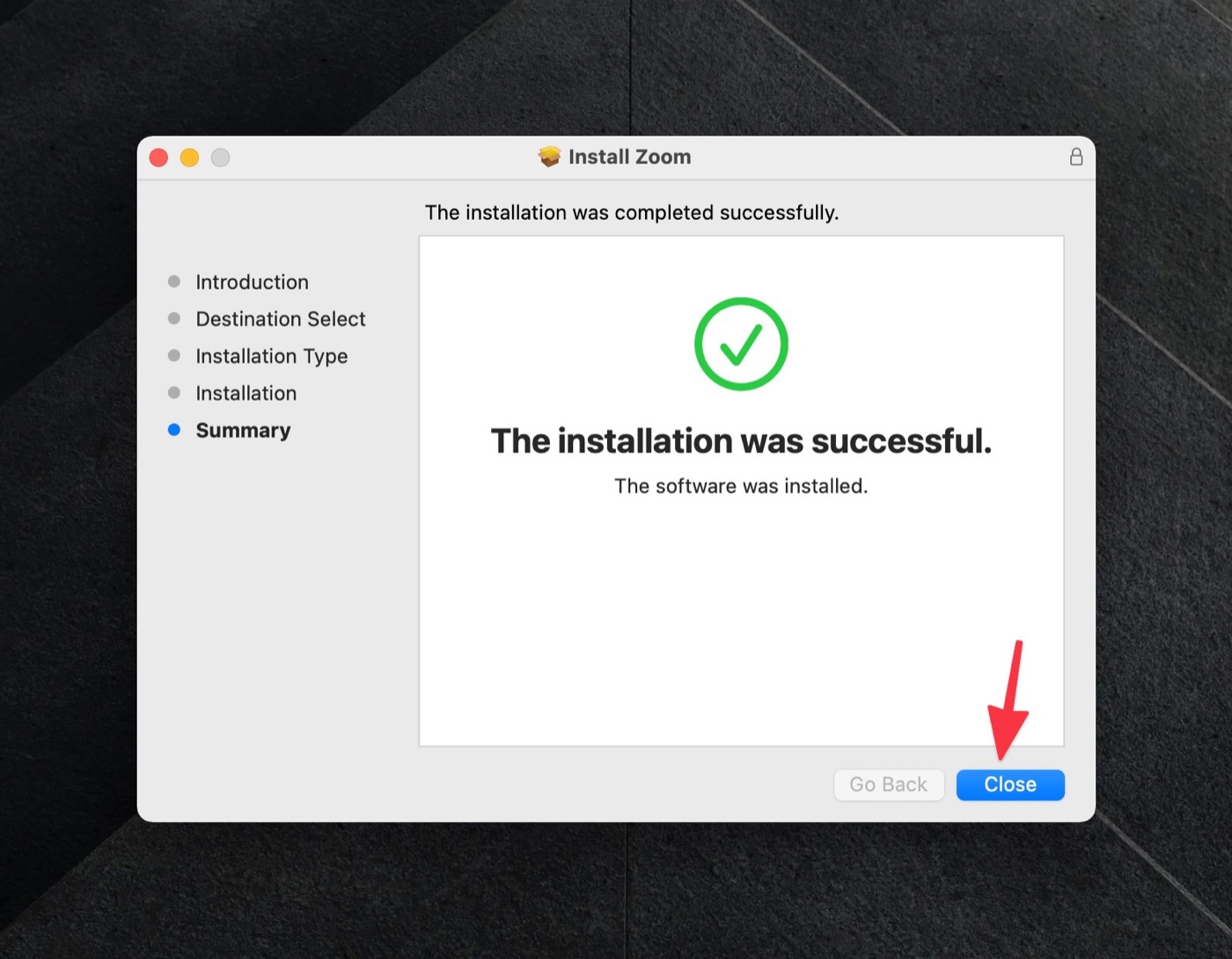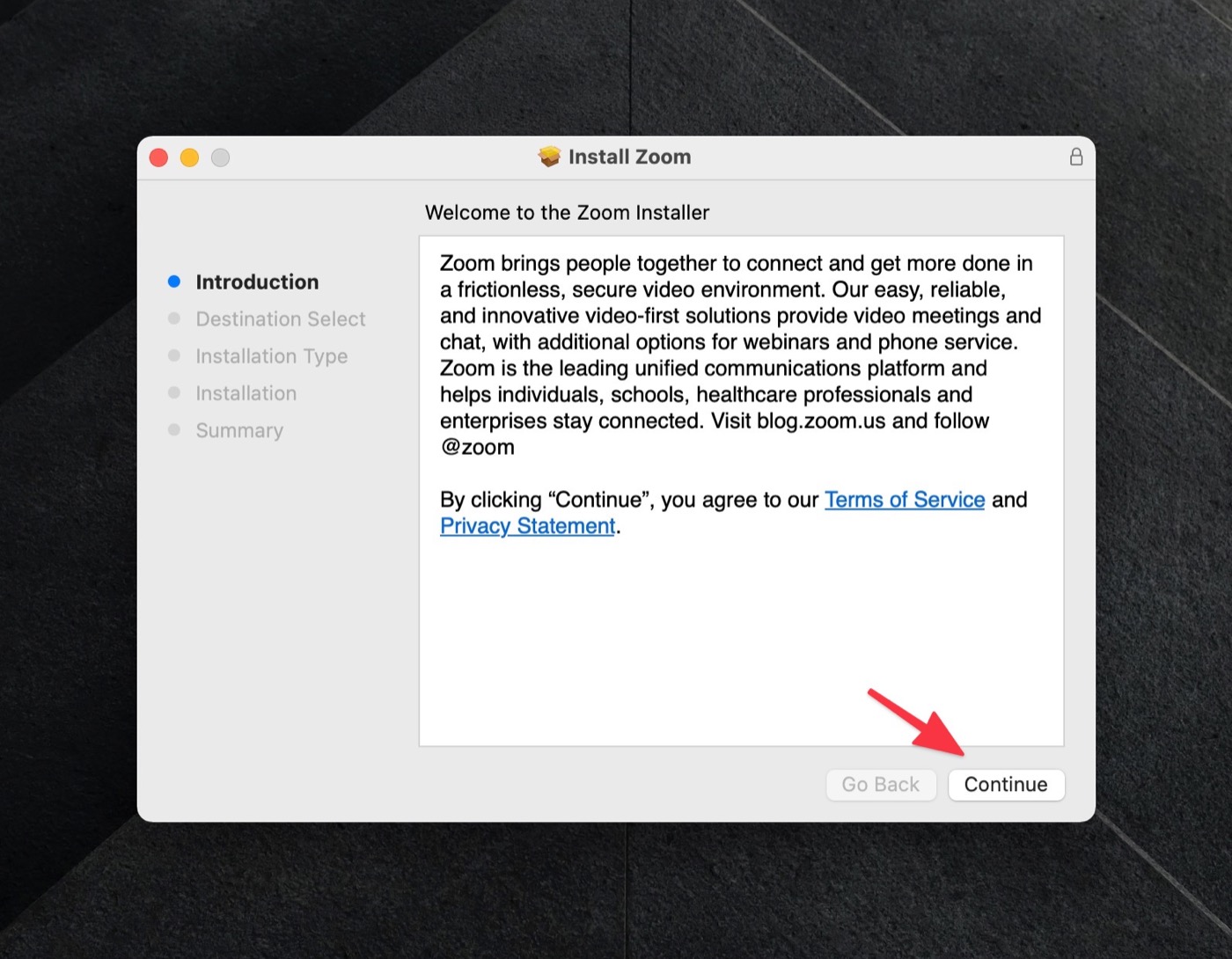 ดับเบิ้ลคลิกไฟล์ Zoom.pkg เพื่อเริ่มการติดตั้ง