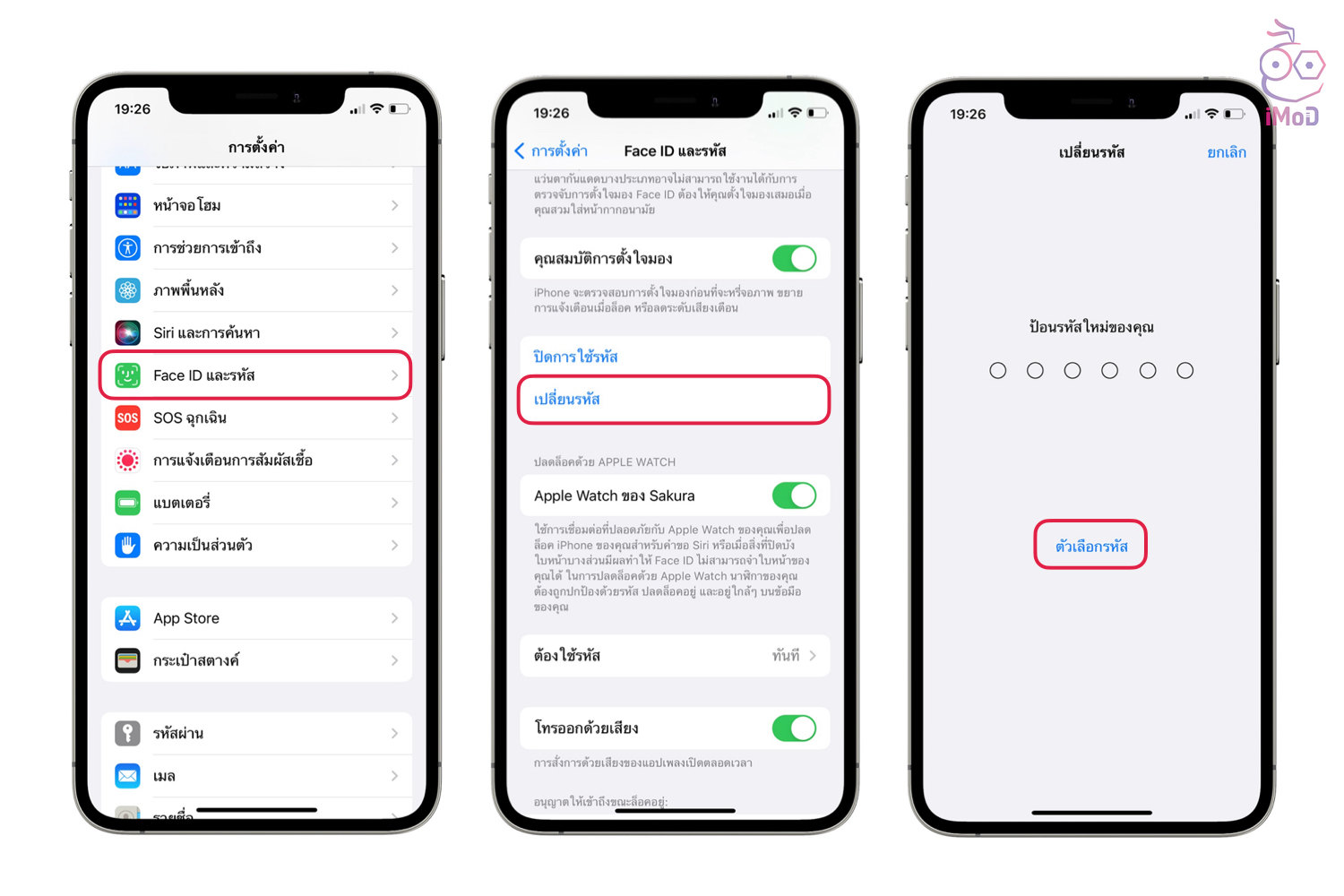 ไปที่ การตั้งค่า (Settings) > Face ID และรหัส (Face ID & Passcode) > เปลี่ยนรหัส (Change Passcode) > ตัวเลือกรหัส (Passcode Options)