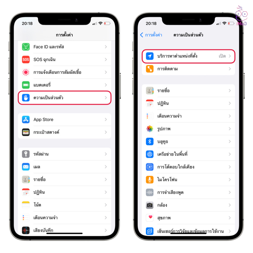 ไปที่ การตั้งค่า (Settings) > ความเป็นส่วนตัว (Privacy) > บริการหาตำแหน่งที่ตั้ง (Location Services)
