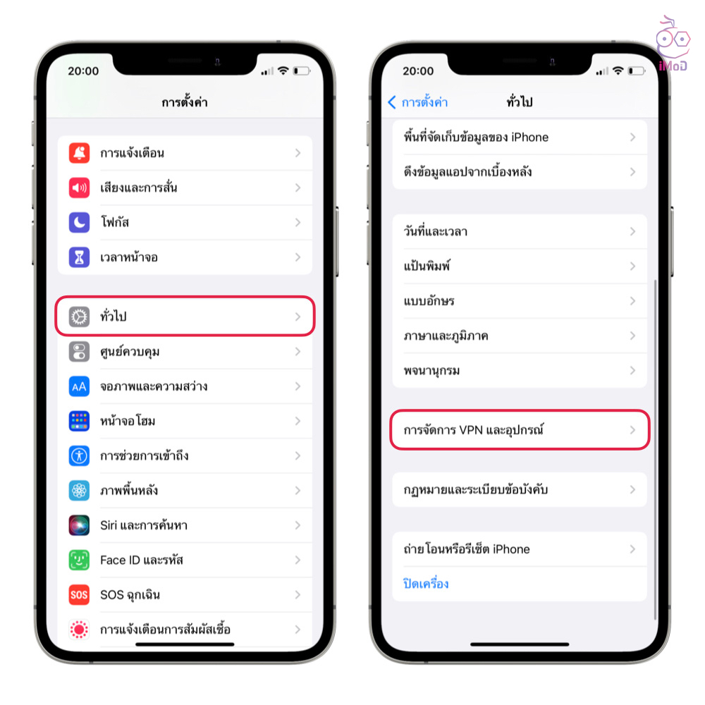 ไปที่ การตั้งค่า (Settings) > ทั่วไป (General) > การจัดการ VPN และอุปกรณ์ (VPN & Device Management)