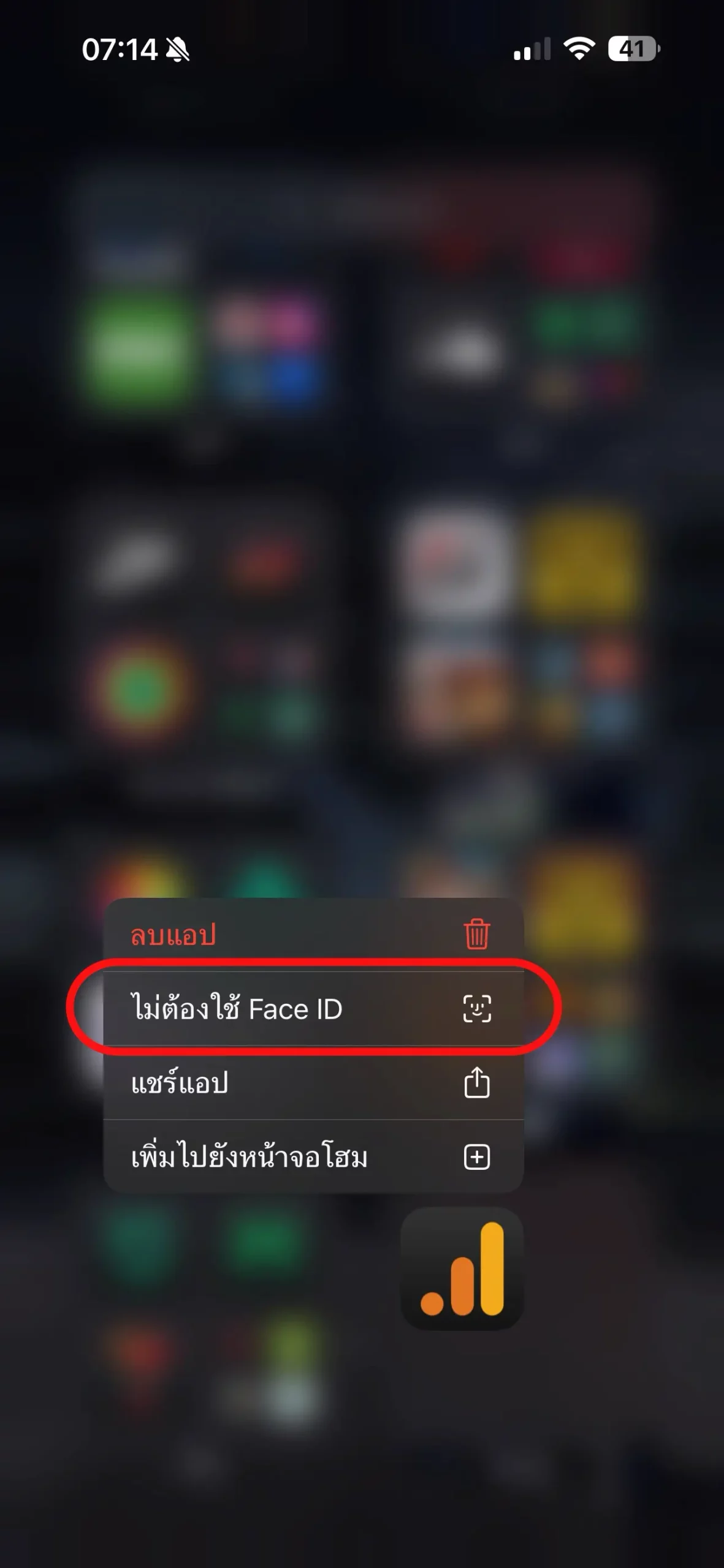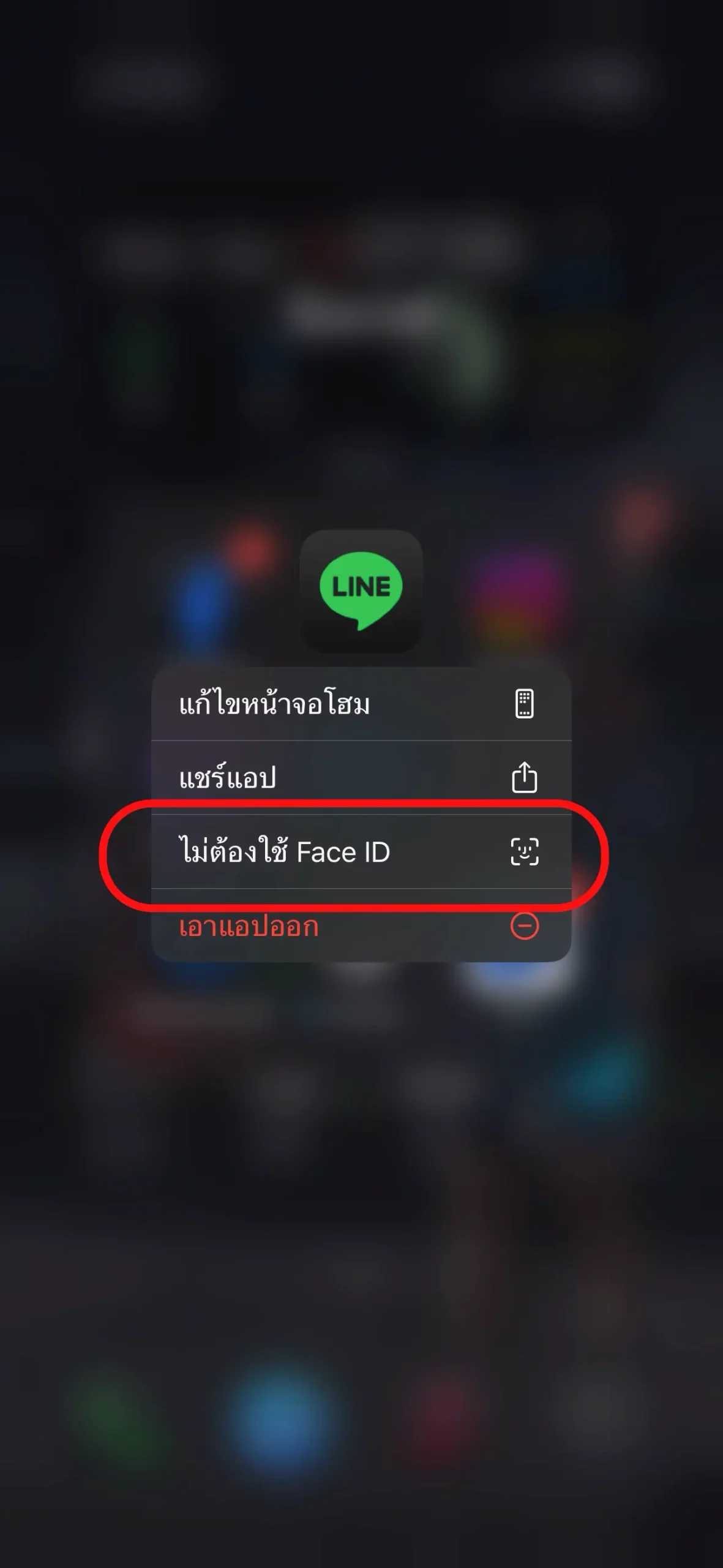 วิธีการปิดการใช้งาน Face ID ก่อนเข้าแอปสามารถทำได้โดย แตะแอปที่ต้องการค้างไว้ > เลือก “ไม่ต้องใช้ Face ID”