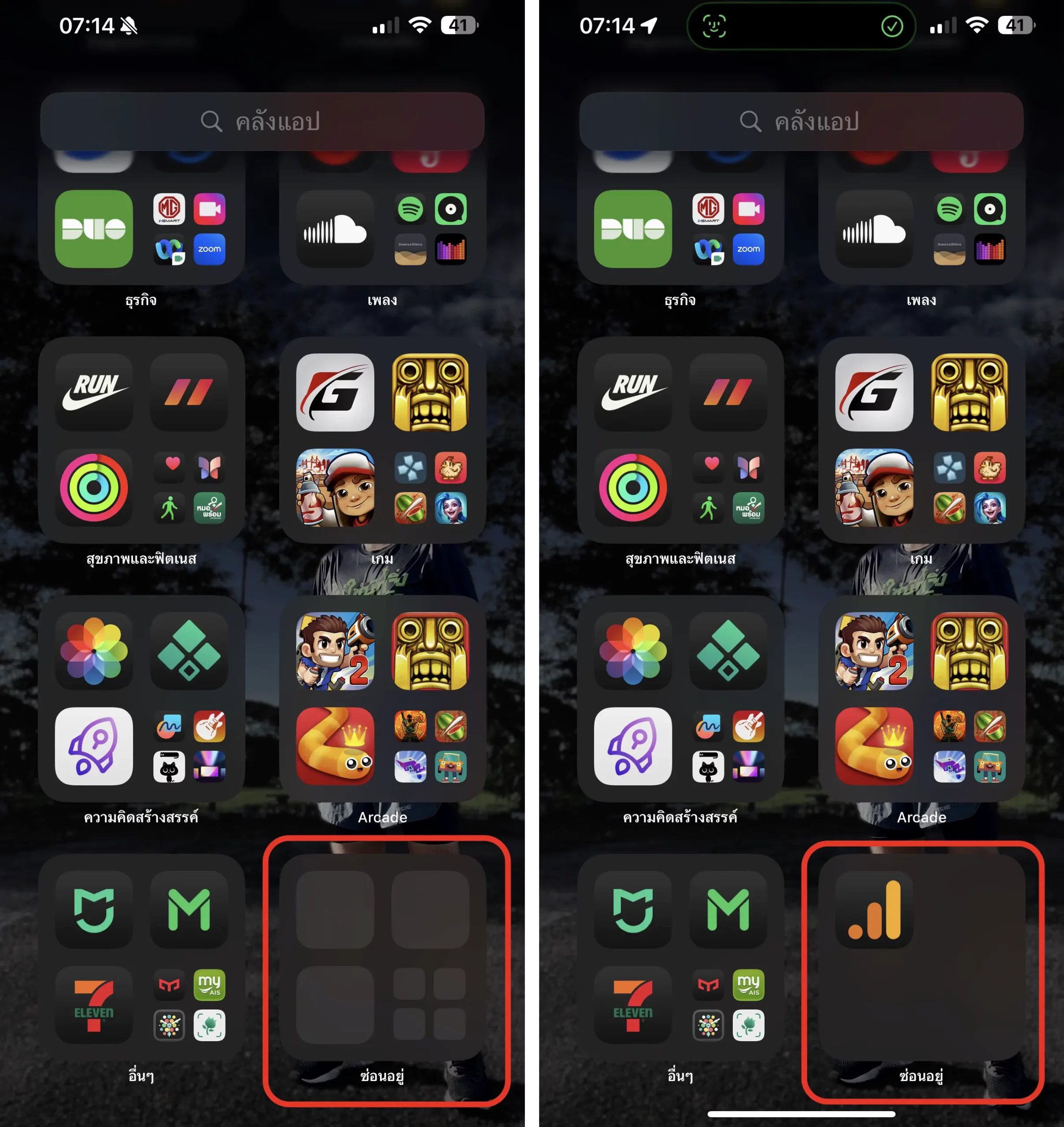 การตั้งค่านี้จะช่วยให้ผู้ใช้สามารถซ่อนแอปไปยังคลังแอป และถ้าอยากดูแอปที่ซ่อนไว้ ต้องสแกน Face ID, Touch ID ก่อน