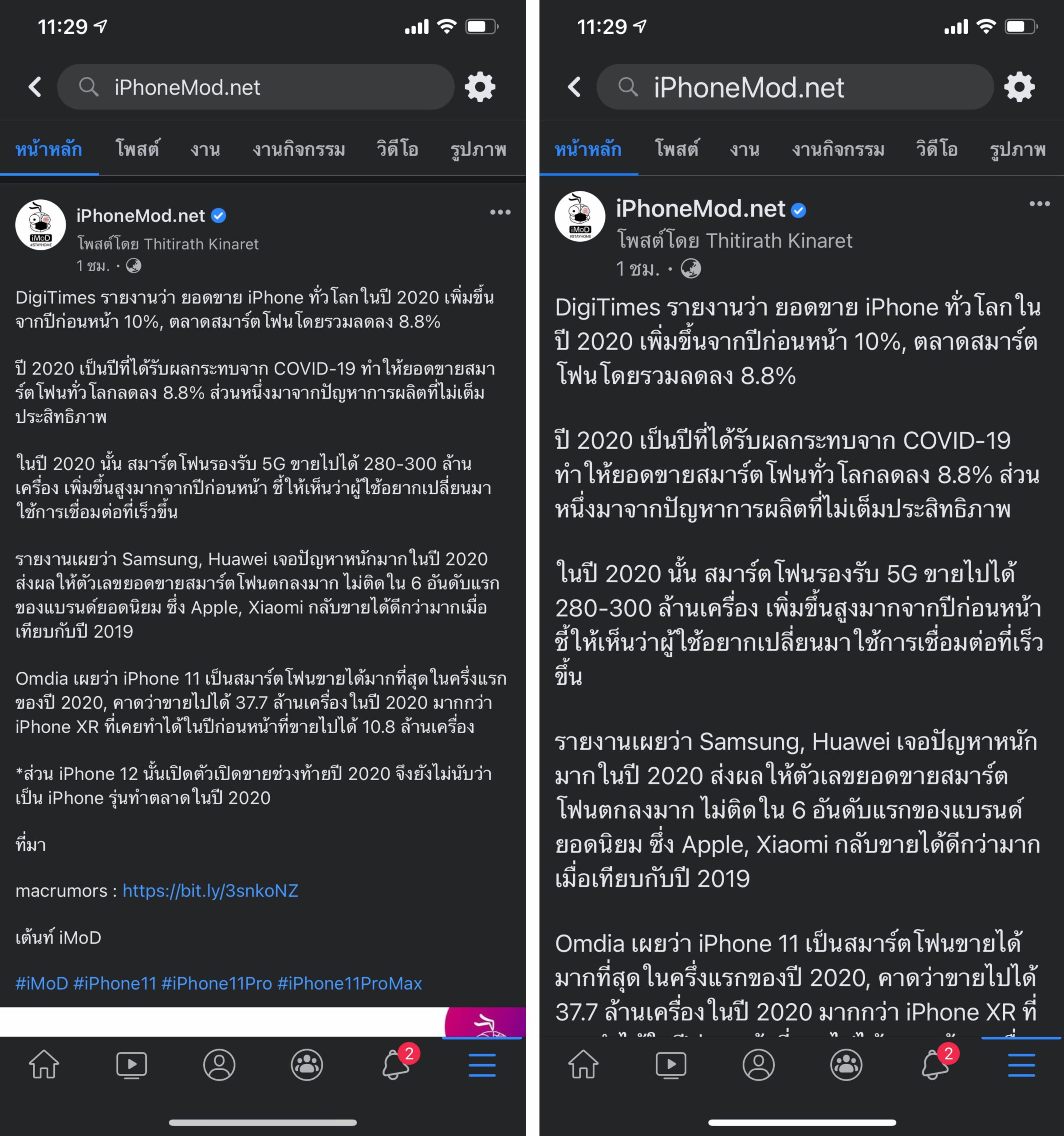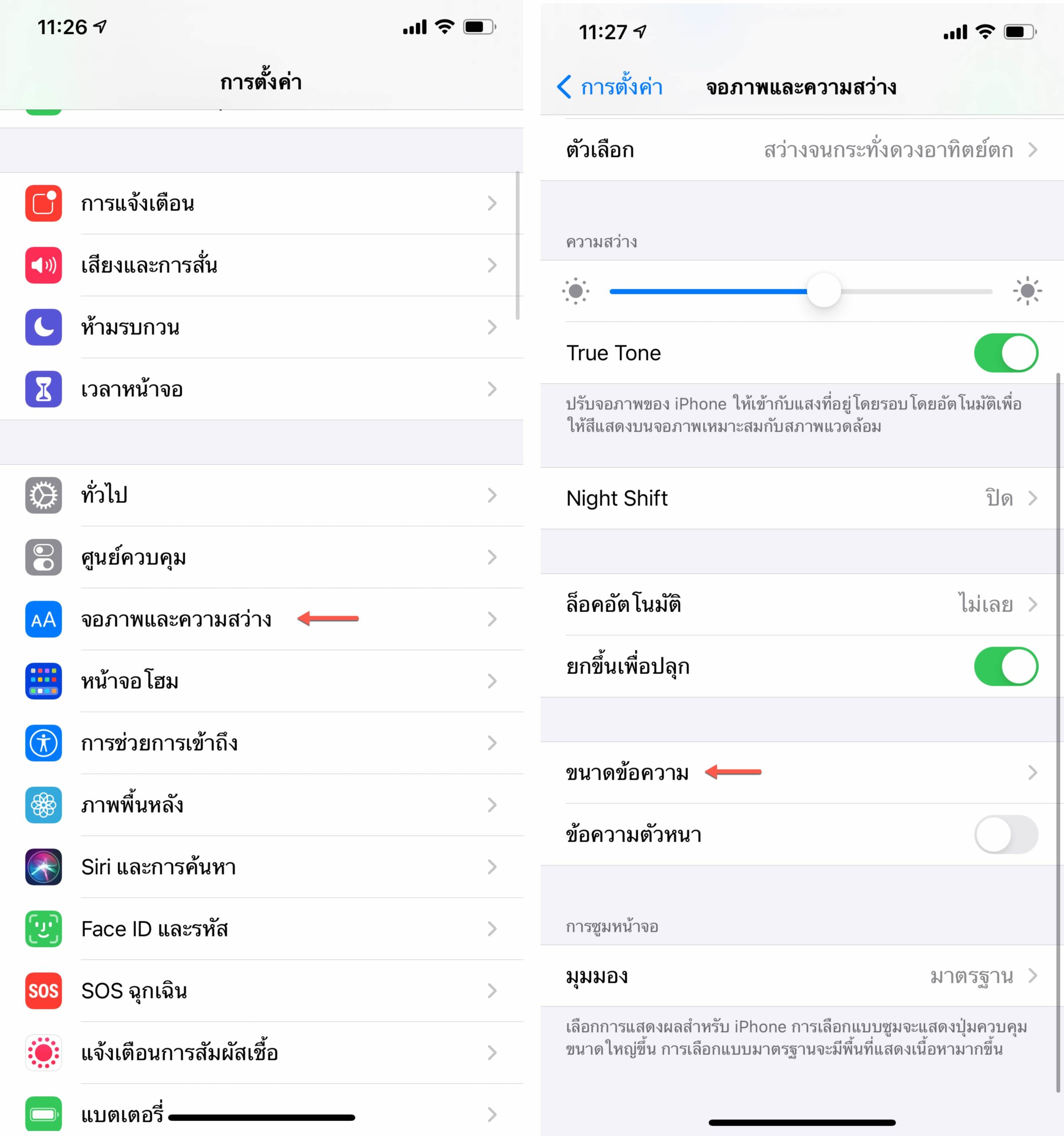 ตัวอย่างการปรับขนาดข้อความใน iPhone ให้ใหญ่ขึ้น