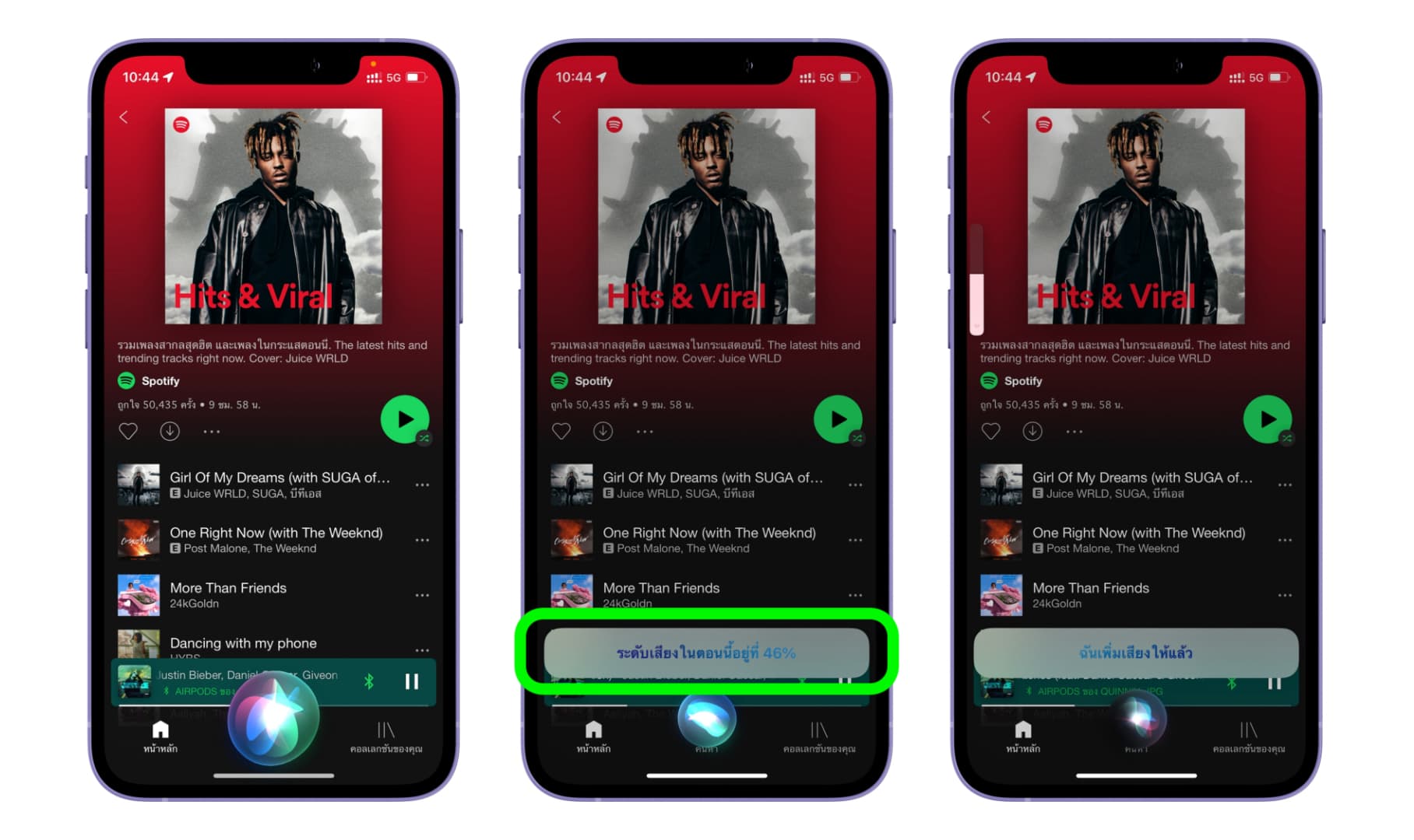 ลองใส่ AirPods แล้วเปิดเพลง จากนั้นให้ลองเพิ่มเสียงที่ระดับสูงสุด หรือเกือบสูงสุด ให้ฟังดูว่าเสียงที่ออกมานั้นดังแบบที่มันควรจะเป็นหรือยัง หรืออาจจะลองถาม Siri ดูว่า “หูฟังดังเท่าไหร่?” หรือ “ระดับเสียงหูฟังดังเท่าไหร่” จากนั้น Siri ก็จะบอกระดับเสียงแบบเป็นเปอร์เซ็นต์ให้เราทราบ