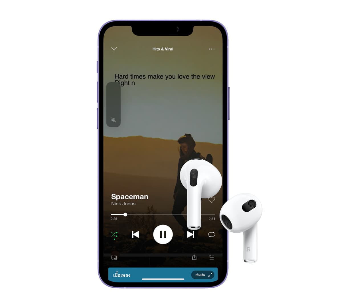 1. สวม AirPods ทั้งสองข้าง และเปิดเพลงซักเพลงนึง