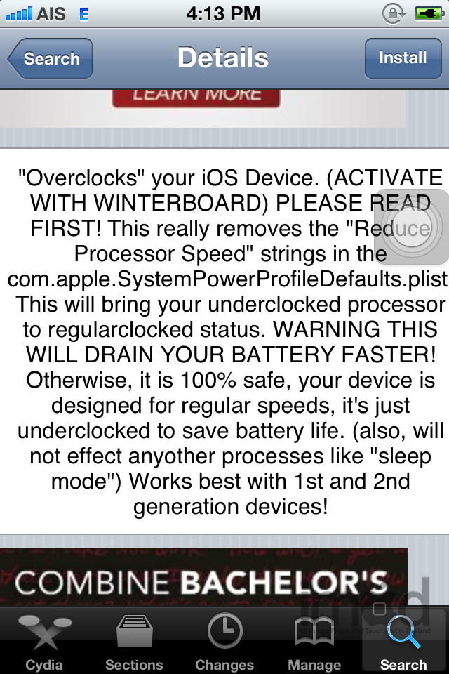 1. ให้หา tweak ที่ชื่อว่า iOverclock จาก Cydia ครับ