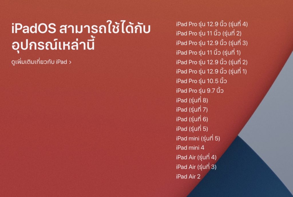 อุปกรณ์ที่รุ่นที่รองรับ iPadOS 14