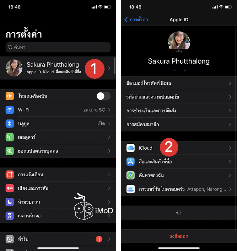 ไปที่การตั้งค่า (Settings) > แตะ Apple ID > แตะ iCloud