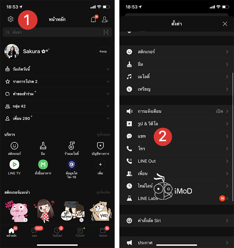 ไปที่แอป LINE > แถบหน้าหลักให้แตะ การตั้งค่า ที่บนมุมซ้ายของหน้าจอ > แตะ แชท (Chat)