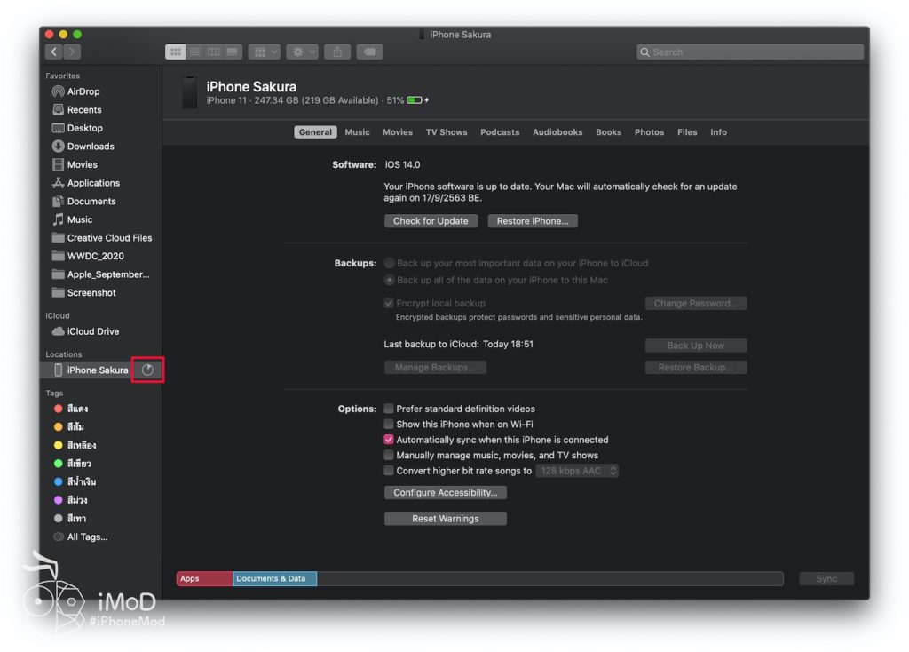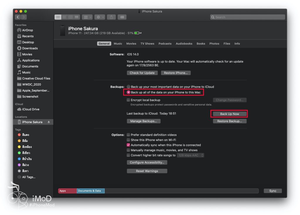 สำหรับ Mac ที่อัปเดตเป็น macOS Catalina แล้ว เราจะสำรองข้อมูลผ่านแอป Finder ซึ่งการสำรองข้อมูลแบบนี้จะเป็นการนำข้อมูลจาก iPhone, iPad ไปเก็บไว้บน Mac