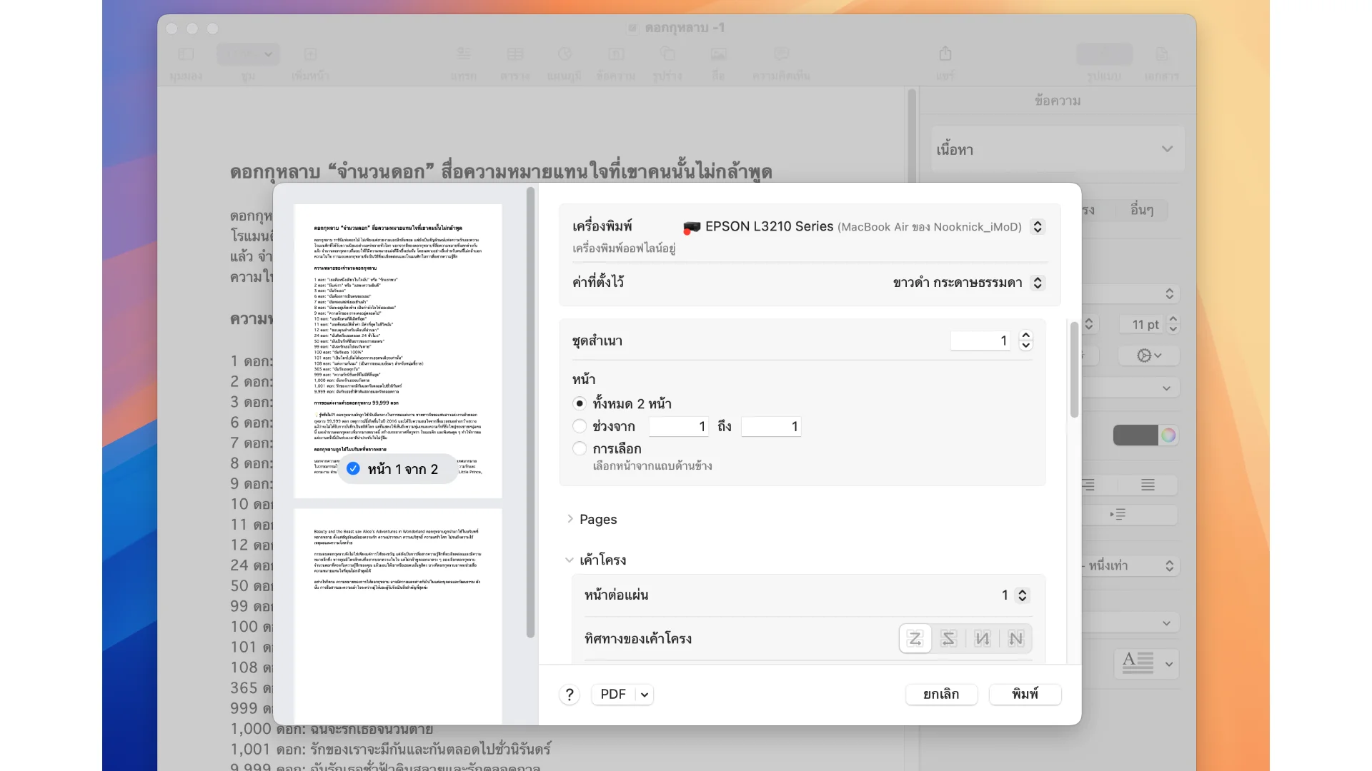 - การตั้งค่าอื่น ๆ สามารถทำได้ เช่น จำนวนหน้าต่อกระดาษ 1 แผ่น, การใส่ขอบ หน้ากระดาษและอื่น ๆ