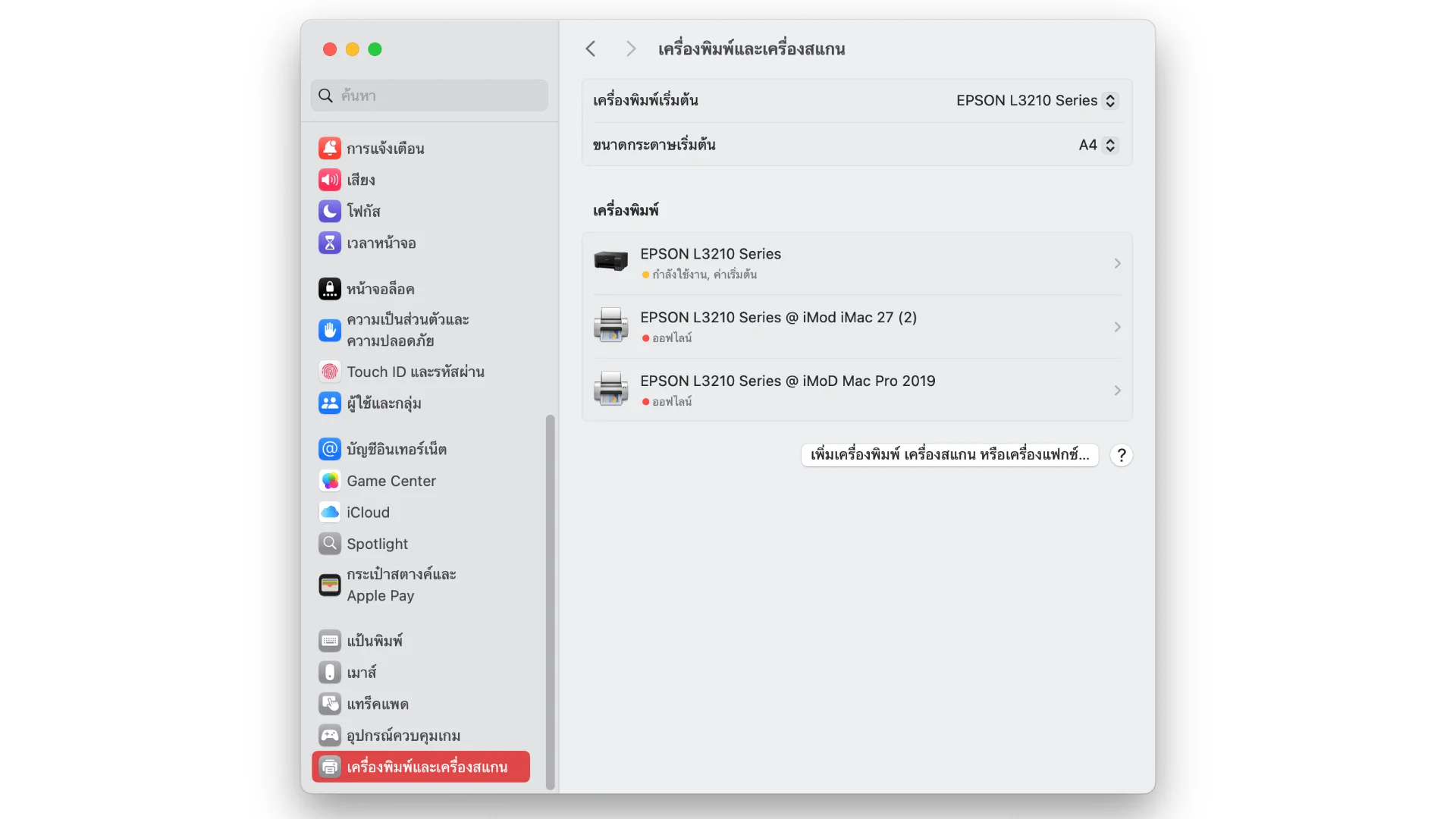 - การตั้งค่าเริ่มต้นของเครื่องพิมพ์: ในการใช้งานครั้งแรก คุณสามารถตั้งค่าเครื่องพิมพ์ได้ง่าย ๆ โดยเข้าไปที่ การตั้งค่าระบบ (System Preferences)> เครื่องพิมพ์และเครื่องสแกน (Printers & Scanners) จากนั้นเลือกเครื่องพิมพ์ที่คุณต้องการให้เป็นเครื่องพิมพ์เริ่มต้น และอย่าลืมเลือกขนาดกระดาษเริ่มต้นด้วยนะ