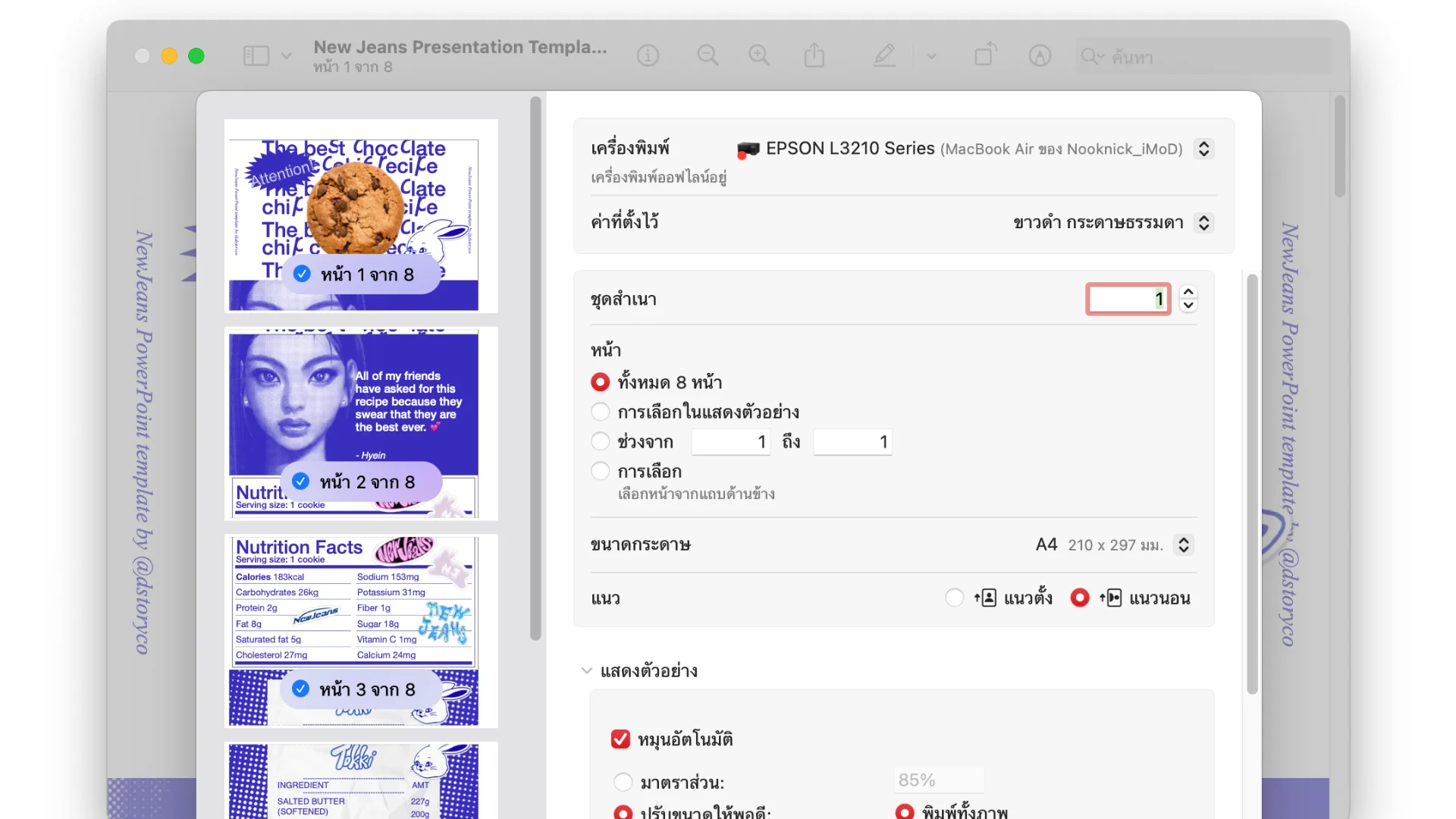 - จำนวนชุดสำเนา (Copies): ระบุจำนวนสำเนาที่ต้องการพิมพ์ (ค่าเริ่มต้นเป็น 1 หากคุณอยากได้ 10 ชุดก็ใส่เลข 10)
