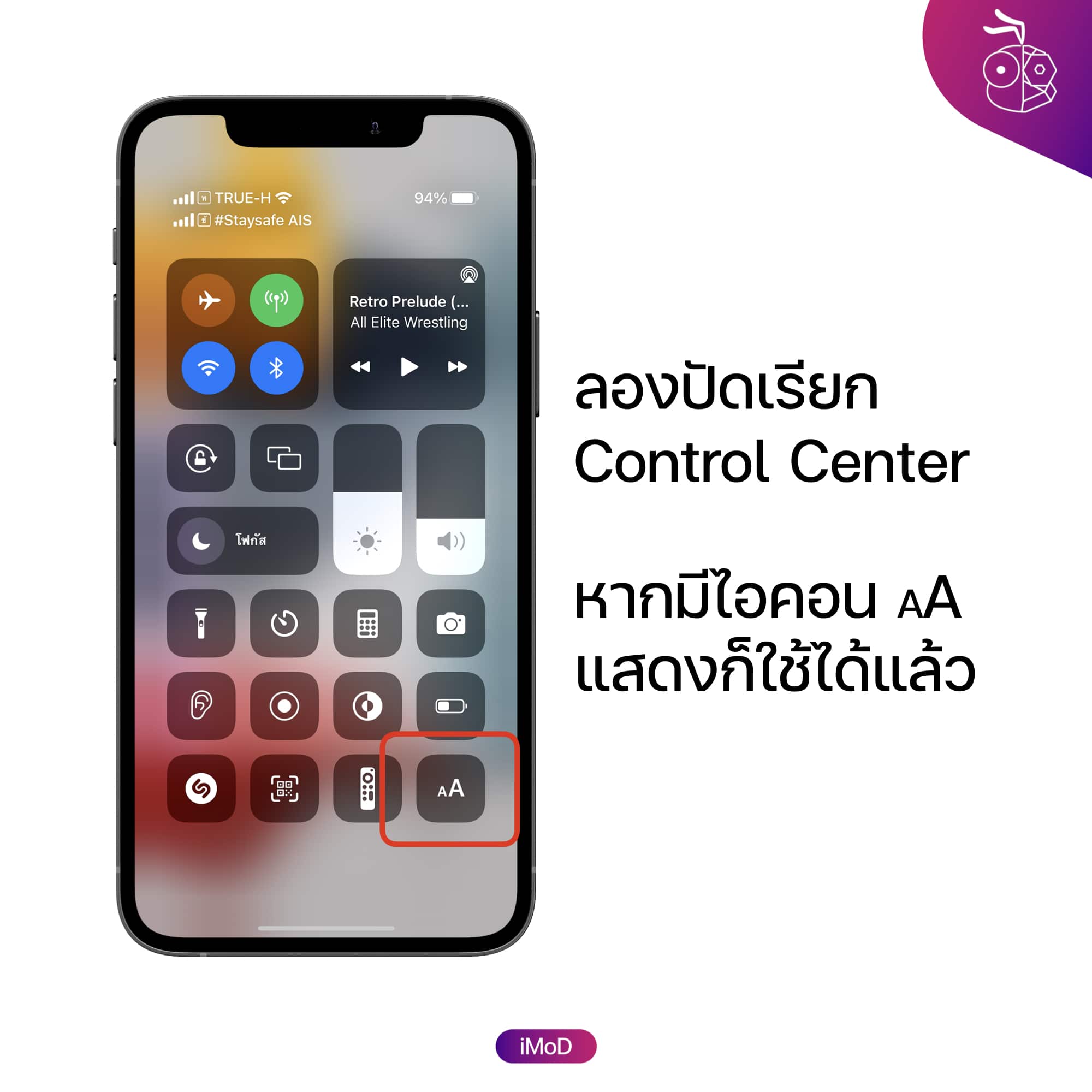สำหรับการใช้งานนั้น เราสามารถปัดเรียก Control Center แล้วแตะที่ไอคอน AA ได้เลย