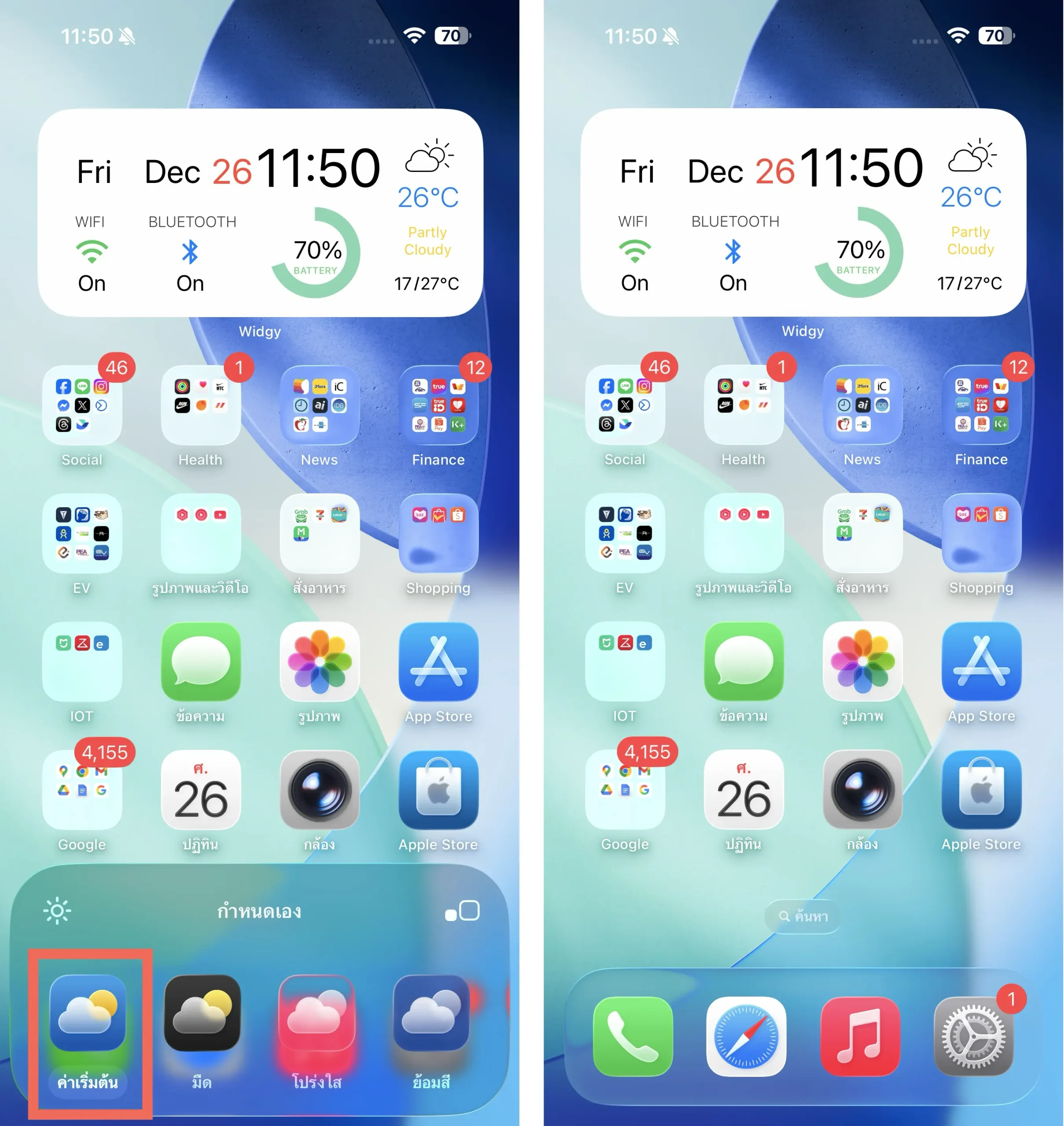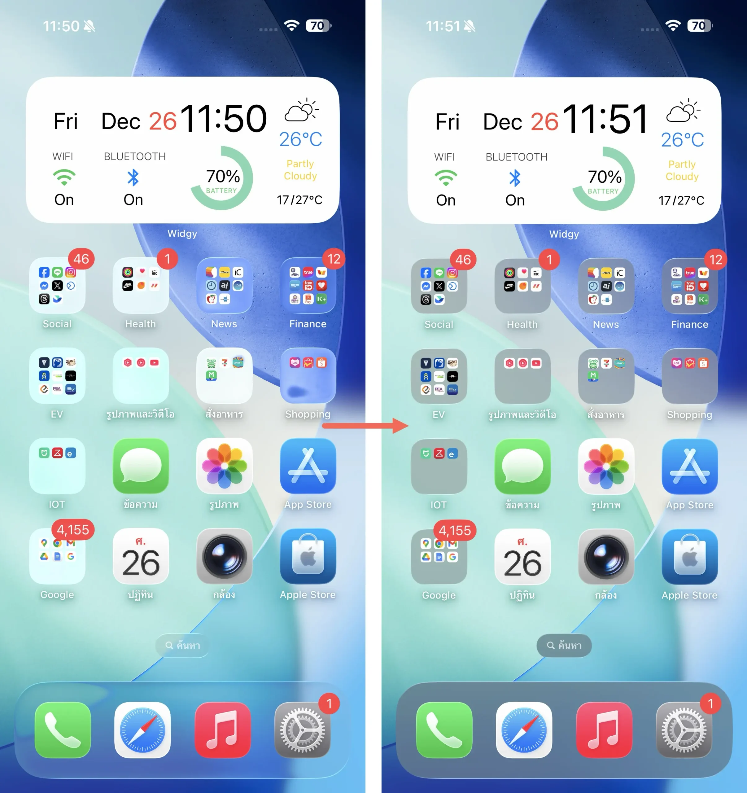 ผู้ใช้ที่เพิ่งอัปเดต iOS 26 บางรายอาจเจอรูปแบบการแสดงผลไอคอนแอปในหน้าจอโฮมแบบโปร่งใส ถ้าไม่ชอบก็เปลี่ยนได้โดย