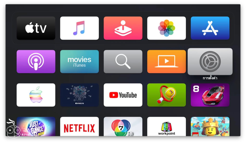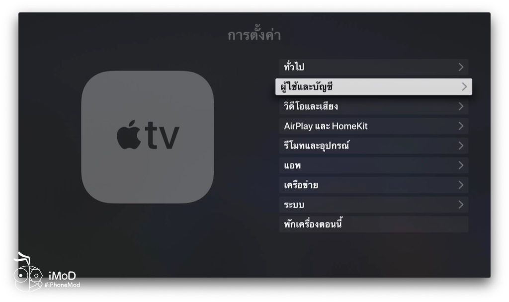 เริ่มต้นให้เราตรวจสอบก่อนว่าได้ล็อกอิน Apple TV ด้วย Apple ID ของเราแล้วหรือยัง โดยไปที่การตั้งค่า (Settings)