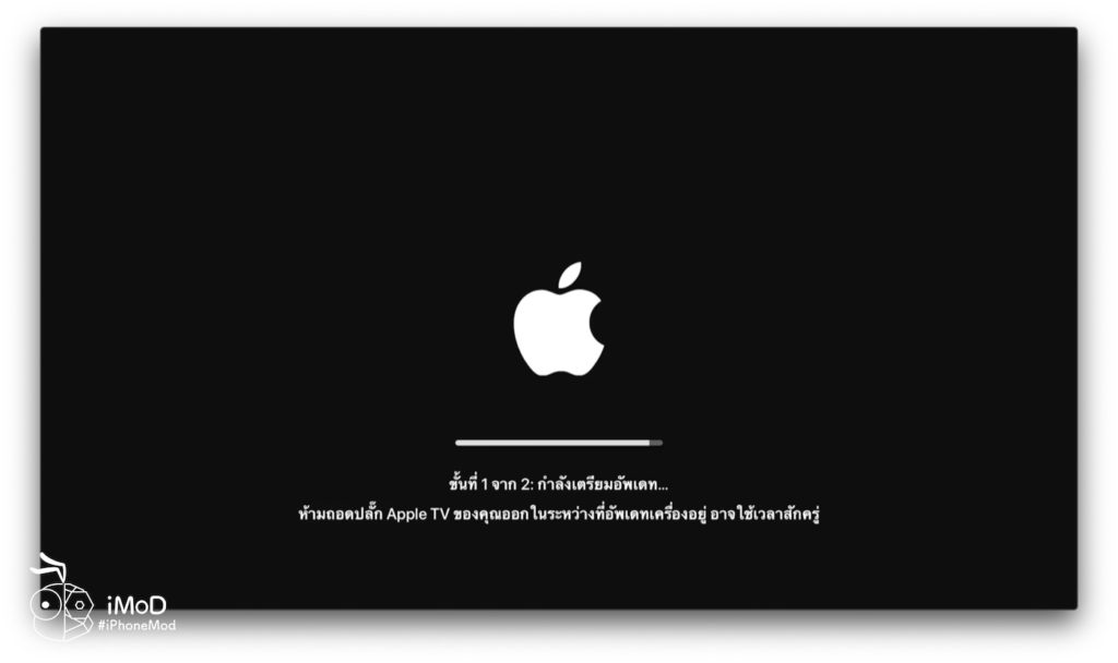 - ระบบจะทำการแตกไฟล์และติดตั้งเฟิร์มแวร์ tvOSรอให้กระบวนการเสร็จสิ้นทั้งหมดแล้วค่อยถอดสาย USB-C ออก