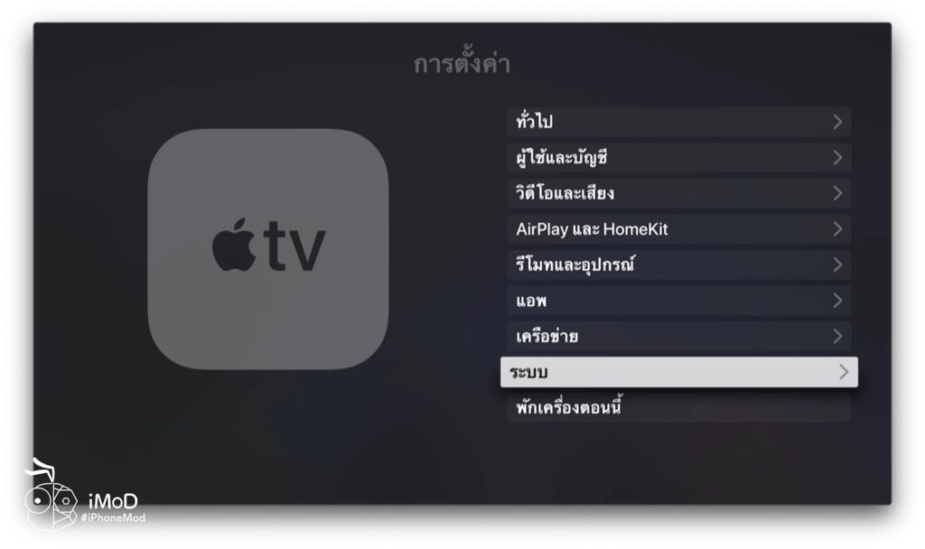 จากนั้นย้อนกลับโดยกดปุ่ม Menu บนรีโมทสองครั้งมาที่หน้าการตั้งค่า แล้วเข้าสู่เมนู ระบบ (System)